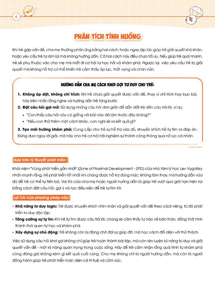 Thúc đẩy tư duy độc lập của trẻ: Thay vì áp đặt, bộ sách hướng dẫn cách đặt câu hỏi để trẻ tự suy nghĩ và rút ra bài học.