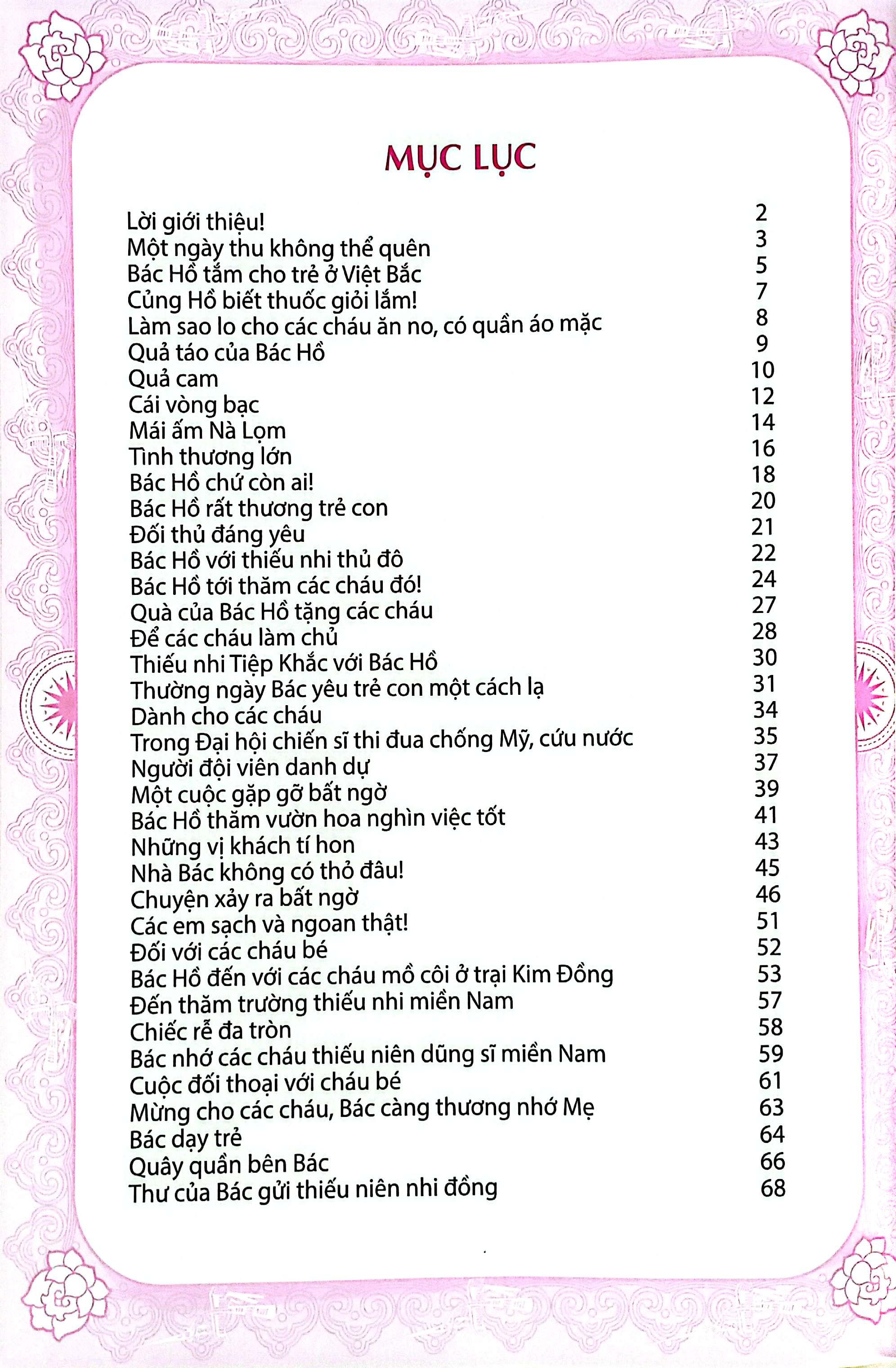 Qua những câu chuyện sinh động được những người từng gần gũi hay vinh dự được gặp Bác chứng kiến và kể lại, cho thấy Bác Hồ là người vô cùng yêu thương trẻ và hiểu tâm lý dạy trẻ. Bác chăm lo, dạy dỗ các cháu từ việc nhỏ đến việc lớn. Vào mỗi dịp khai trường hay Tết Trung thu, Tết Thiếu nhi Bác thường có thư gửi các cháu. Lời lẽ thư luôn ân cần, trìu mến, chí tình. Bác luôn nhắc thiếu niên, nhi đồng phải đoàn kết, thi đua học tập, lao động, rèn luyện sức khỏe… Sự quan tâm của Bác đối với thiếu niên, nhi đồng gắn chặt với những trăn trở về tương lai của dân tộc. Những lời dạy của Bác dành cho lứa tuổi thiếu niên nhi đồng được xem như một trong những di sản vô giá của dân tộc và thế hệ trẻ nước ta.