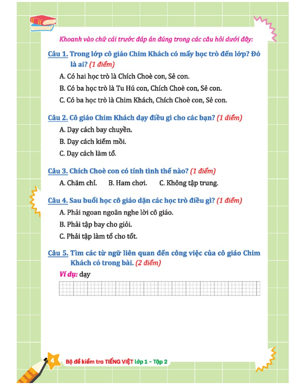 được biên soạn theo tuần, rất thuận lợi cho giáo viên và học sinh sử dụng trong buổi học thứ hai ở trường. Hệ thống bài tập trong sách đa dạng về hình thức: đánh