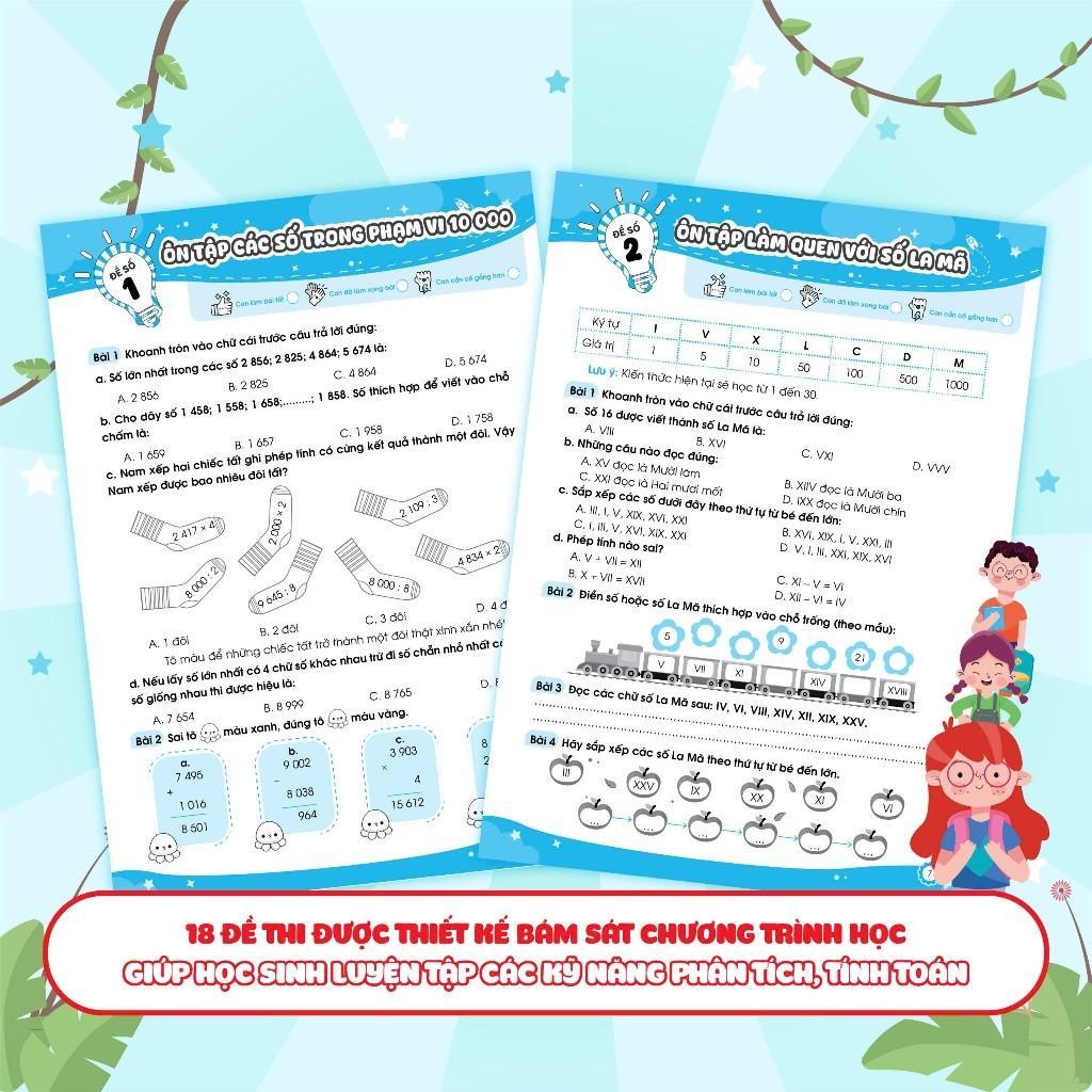 Đề ôn luyện và kiểm tra Toán lớp 3 tập 2 là một "trợ thủ" đắc lực giúp các em học sinh có thể tự ôn luyện sau mỗi giai đoạn học tập: ôn tập ngắn sau 2-3 tuần học, ôn tập giữa học kỳ và ôn tập cuối học kỳ - cuối năm học.