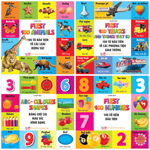 Mua tại TiktokBộ Sách 100 Từ Đầu Tiên Cho Bé (Bộ 4 Cuốn) Bộ sách 100 Từ Đầu Tiên Cho Bé là sách song ngữ dành cho trẻ nhỏ, giúp bé làm quen với những từ vựng cơ bản trong cuộc sống. Nội dung gồm các từ thuộc nhiều chủ đề như động vật, đồ vật, màu sắc, số đếm, hình dạng… Mỗi từ đều đi kèm hình minh họa sinh động, giúp bé dễ nhận biết và ghi nhớ. Phiên âm và nghĩa tiếng Việt giúp trẻ tiếp cận tiếng Anh một cách tự nhiên. Sách được thiết kế với màu sắc tươi sáng, chất liệu bìa cứng bền đẹp, phù hợp cho bé từ 0-3 tuổi. Đây là lựa chọn lý tưởng giúp bé phát triển vốn từ ngay từ nhỏ