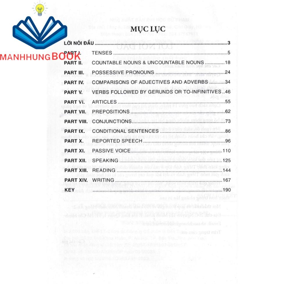 Cuốn sách bao gồm 14 phần, được bố cục theo từng chuyên đề về ngữ pháp nhằm giúp các em ôn tập và củng cố những kiến thức ngữ pháp đã học, đồng thời bổ sung thêm nhiều dạng bài tập nâng cao để các em luyện tập và trau dồi.