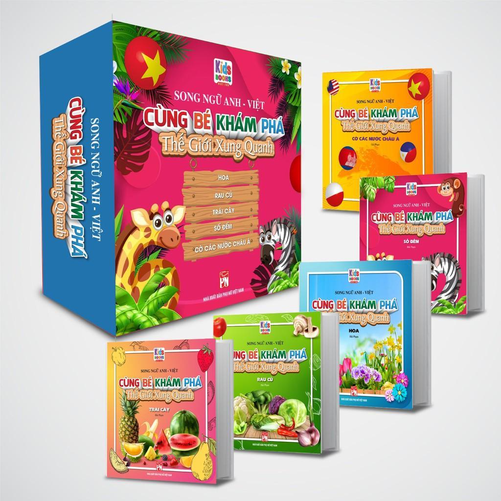 Bộ sách “Cùng bé khám phá thế giới xung quanh” là bộ sách song ngữ vì thế sẽ giúp trẻ làm quen với tiếng Anh, phát triển tư duy khái niệm về đồ vật, động vật, hoa, thế giới … phát triển ngôn ngữ, tình cảm xã hội…
