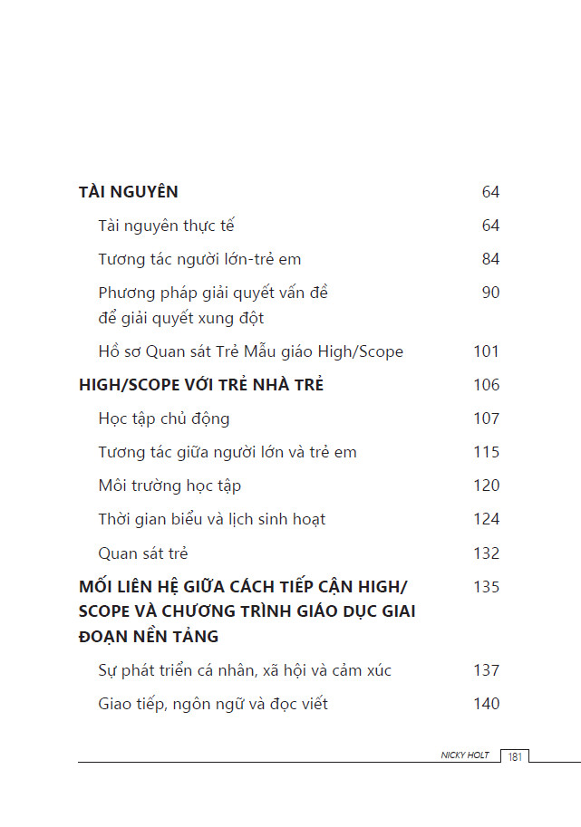 Nicky Holt là chuyên gia trong lĩnh vực giáo dục giai đoạn đầu đời tại Vương quốc Anh. Tác giả đã có 14 năm khai thác, triển khai và phát triển cách tiếp cận High/Scope với tư cách một nhà tư vấn và đào tạo cho các cơ sở giáo dục mầm non địa phương.