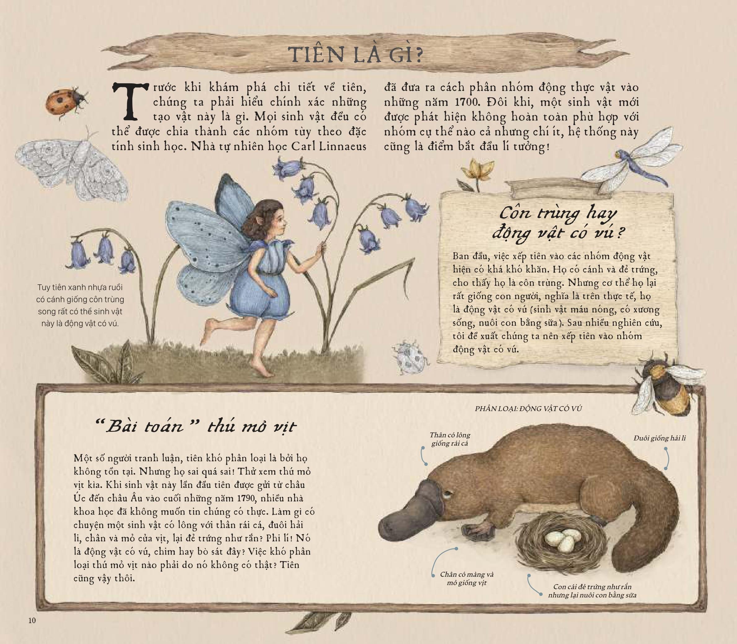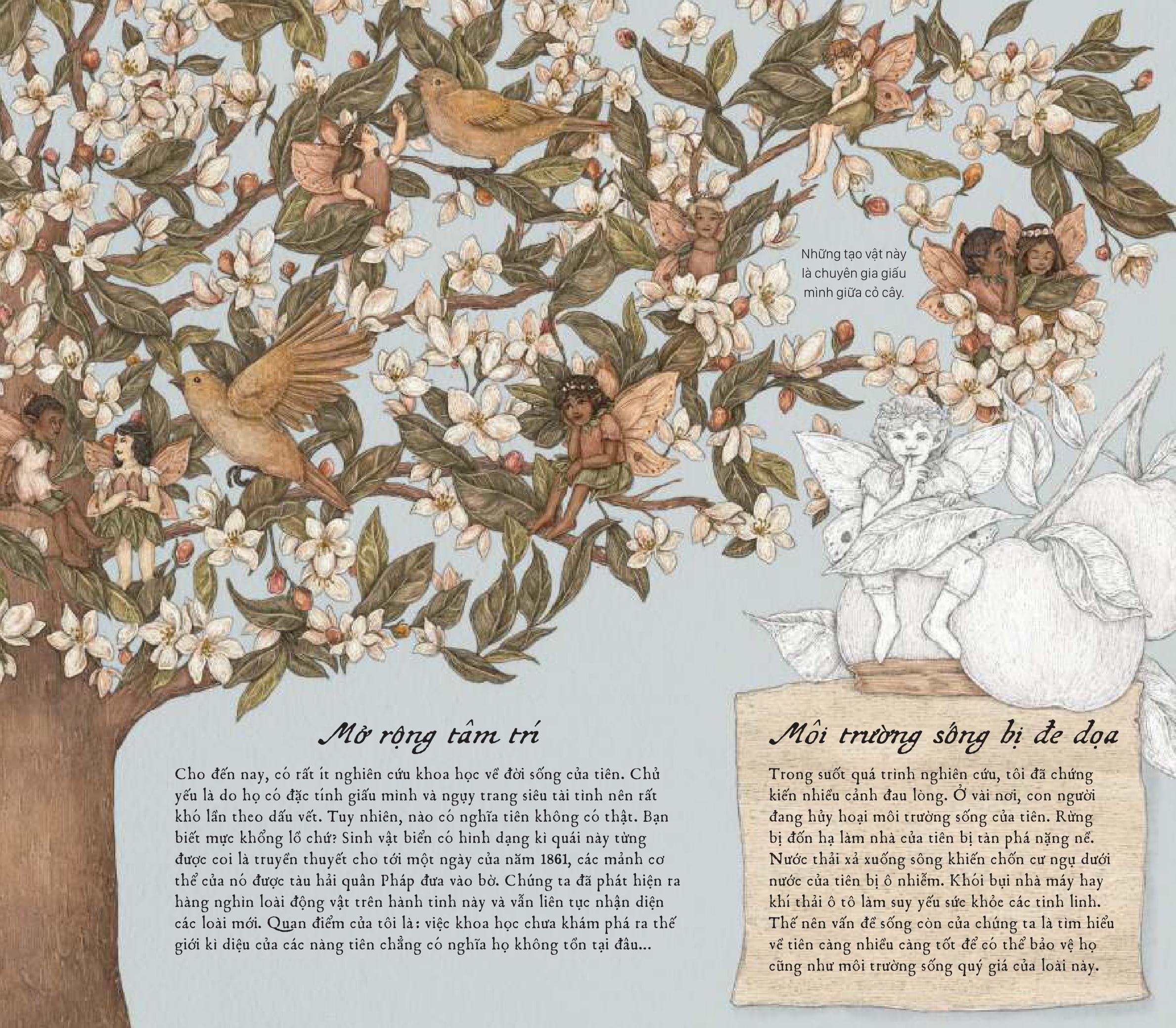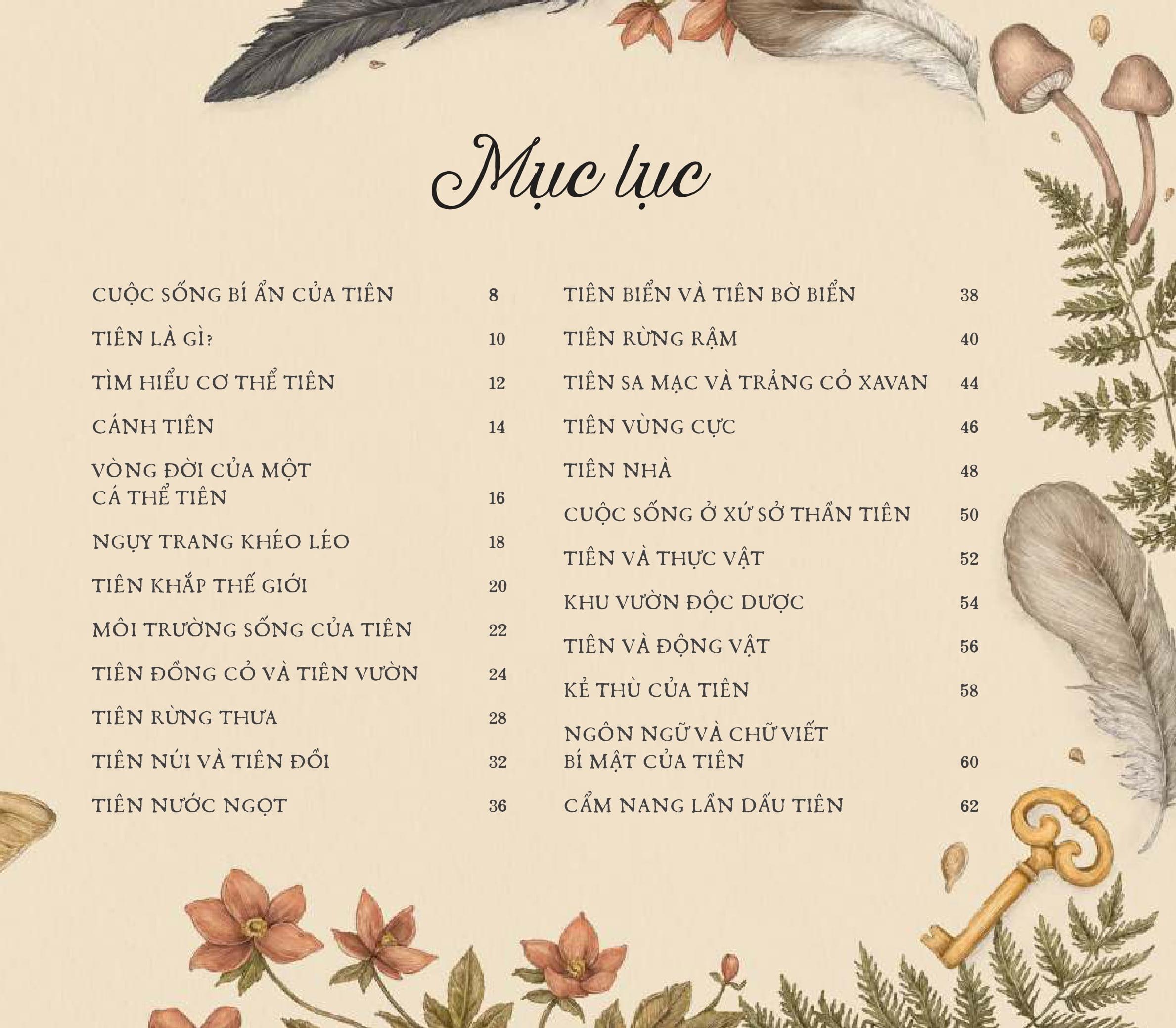 Mua tại TiktokCẩm Nang Về Tiên Bạn đọc thân mến, Bạn đã sẵn sàng cho chuyến hành trình có một không hai chưa? Vậy hãy lật giở cuốn sách này ngay thôi nào! Tiên có thật và hiện diện quanh ta, chỉ cần bạn nhanh trí, tinh mắt và đủ may mắn để trông thấy những tạo vật kì diệu này trong vườn nhà hay trên gác xép mà thôi. Biên soạn bởi nhà thực vật học lẫy lừng – Giáo sư Elsie Arbour, cuốn cẩm nang kì công này được bà gửi tới cháu gái nhằm giúp cô khám phá đời sống bí mật của các loài tiên cũng như vai trò của họ trong thế giới tự nhiên. Tập hợp nhiều ghi chú thực địa chính xác và minh họa cầu kì, từng trang sách tiết lộ đa dạng các loài tiên khác nhau trên khắp đ.ịa cầu, đi sâu phân tích đặc điểm nhận dạng, môi trường sống, tập tính và cả ngôn ngữ bí ẩn của họ. Bạn chắc chắn sẽ phải kinh ngạc trước thế giới các loài tiên siêu sống động và thú vị đấy!