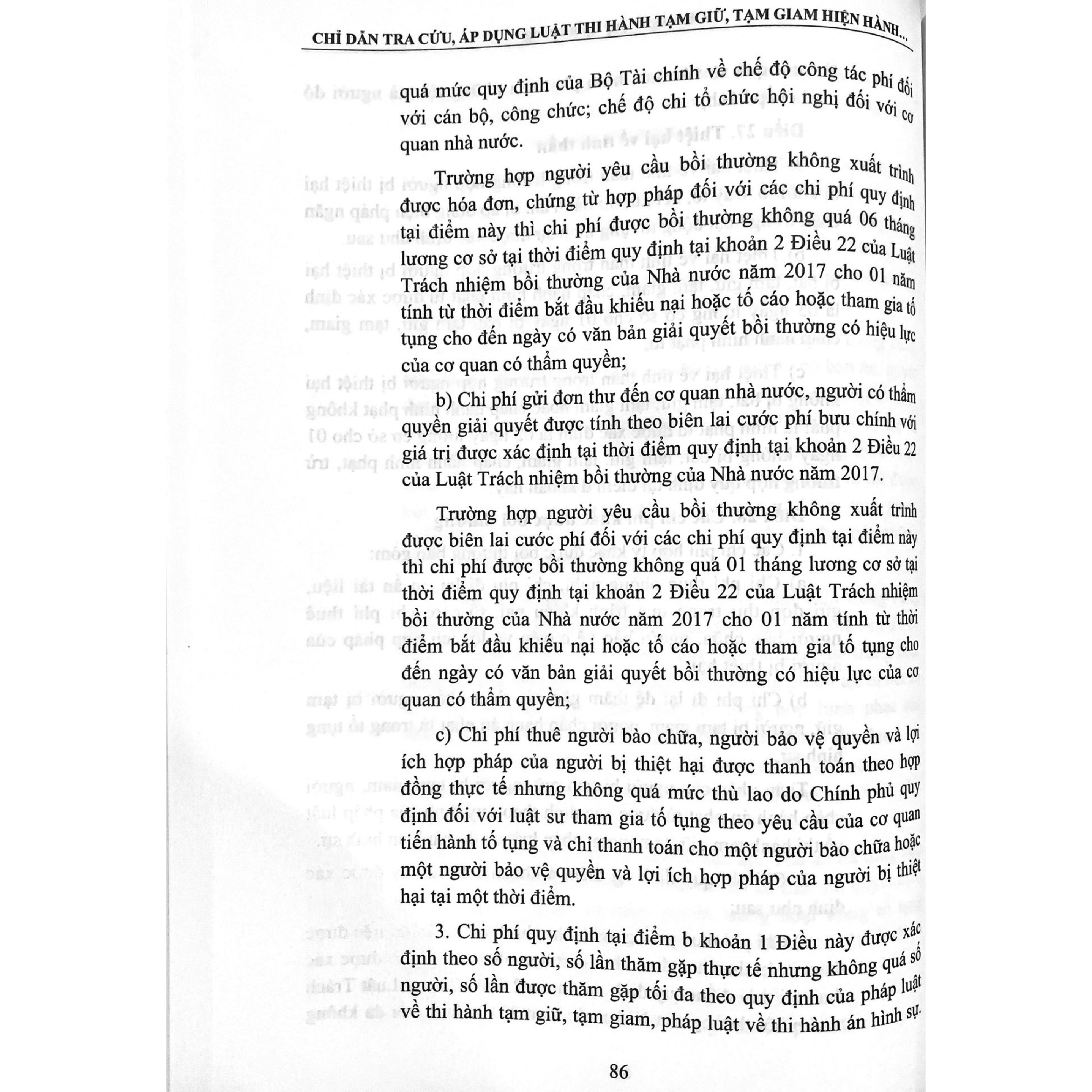 Để góp phần hiện thực hóa Hiến pháp năm 2013, Nhóm tác giả đã biên soạn cuốn "Chỉ dẫn tra cứu, áp dụng luật thi hành tạm giữ, tạm giam hiện hành góp phần thực thiện nguyên tắc hiến định "công nhận, tôn trọng, bảo vệ và bảo đảm quyền con người" ".Cuốn sách tập hợp đầy đủ văn bản pháp luật đang có hiệu lực về tạm giữ, tạm giam theo thủ tục tổ tụng hình sự với các nhóm nội dung liên quan đến từng chương, mục, điều, khoản, điểm của Luật Thi hành tạm giữ, tạm giam hiện hành. Vì vậy, cuốn sách vừa có ý nghĩa lý luận, ý nghĩa lịch sử, vừa có ý nghĩa thực tiễn sâu sắc và bố ích.