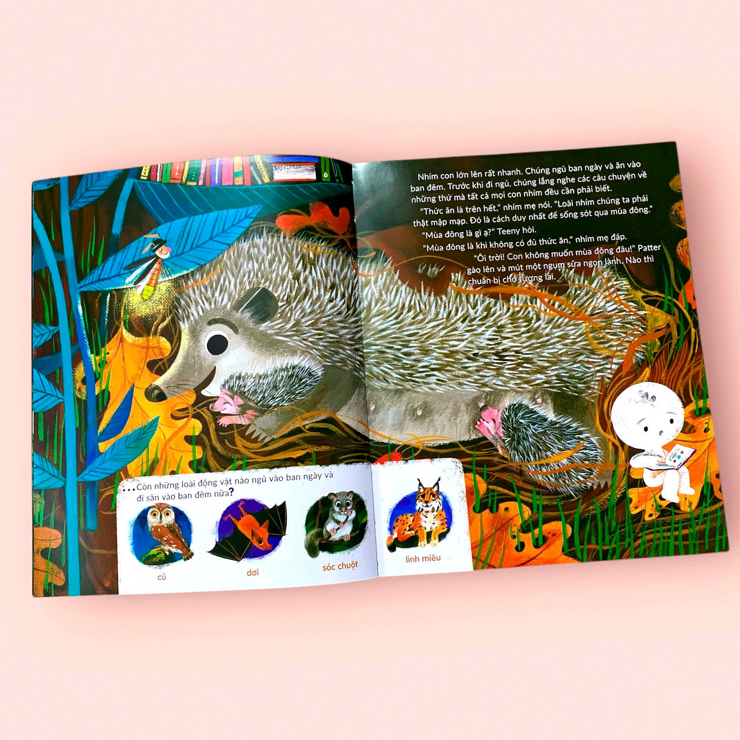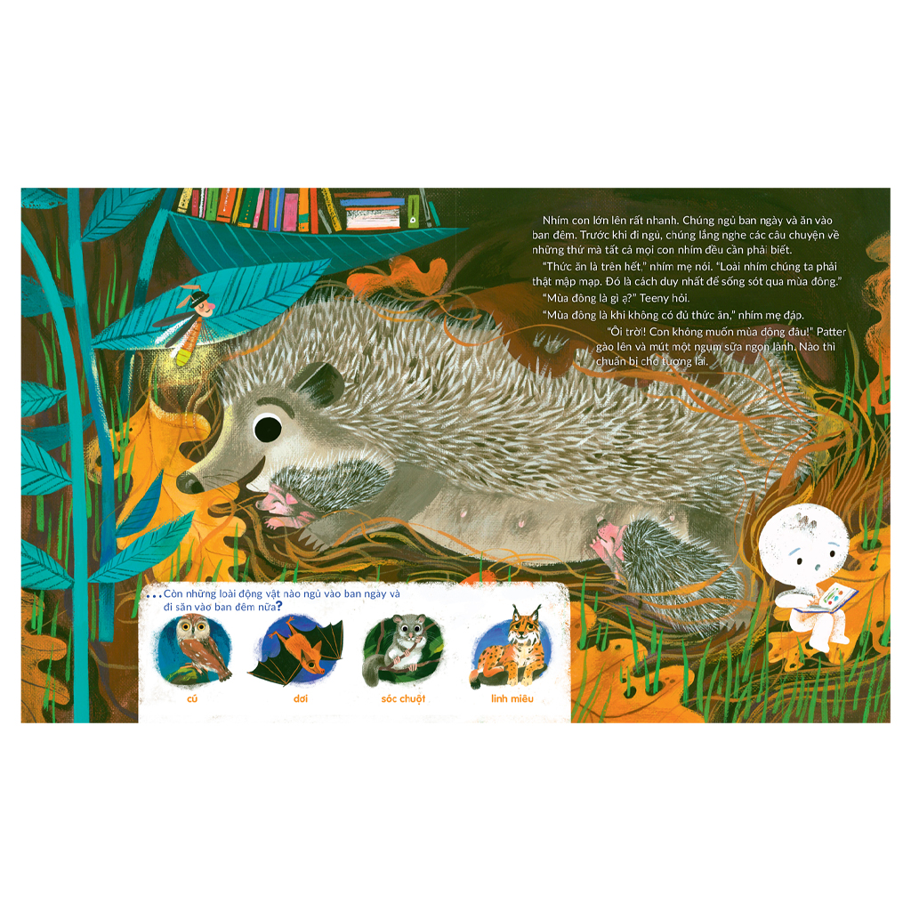 Mua tại TiktokNHÀ NHÍM NƠI CÔNG VIÊN Ở cuốn sách này, sẽ đưa các bạn khám phá môi trường sống của gia đình nhím trong công viên - nơi ẩn chứa nhiều điều thú vị và bất ngờ. Các bạn sẽ được biết đến những thử thách mà hai anh em nhím Patter và Teeny phải đối mặt để sinh tồn trong thế giới đầy rẫy nguy hiểm. Chúng ta sẽ cùng tìm hiểu cách mẹ nhím chăm sóc con non, cách Teeny học hỏi những kỹ năng cần thiết để tự lập và chuẩn bị cho mùa đông khắc nghiệt. Với những bức tranh minh họa sinh động và đẹp mắt, cuốn sách không chỉ khơi gợi trí tưởng tượng và sự tò mò của các bạn nhỏ mà còn mang đến những kiến thức bổ ích về thói quen và lối sống của loài nhím. Qua đó, các bạn sẽ hiểu hơn về thế giới tự nhiên và thêm trân trọng sự đa dạng sinh học của Trái Đất.