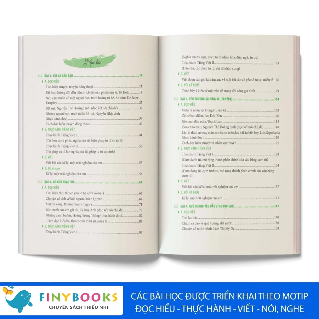 Mỗi bài học sẽ gồm 4 hoạt động: Đọc hiểu thực hành tiếng Việt, Viết, Nói và Nghe. Việc sắp xếp như vậy vừa giúp các em nằm bắt kiến thức dễ dàng, vừa hình thành các năng lực đọc – viết – nói và nghe theo yêu cầu cần đạt của Chương trình giáo dục phổ thông môn Ngữ văn.