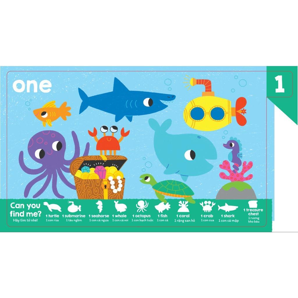 Cuốn sách mang chủ đề về các chữ số đơn giản trong tiếng anh. Các bé sẽ vừa phát triển tư duy logic khi học về các con số, vừa có thể phát triển khả năng quan sát qua từng trang sách. Màu sắc tương phản, bắt mắt, rất phù hợp để bé phân biệt, nhận biết con số.