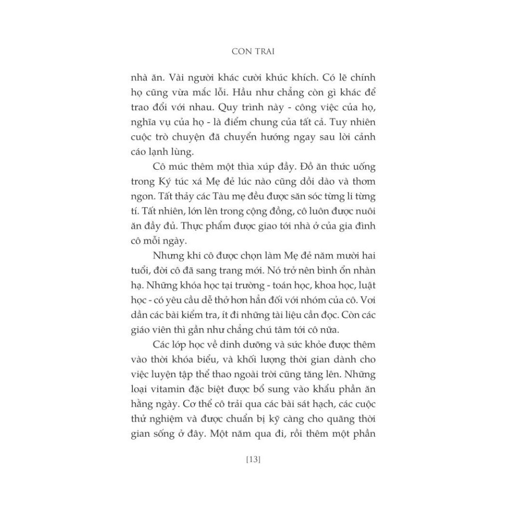 Rằng cô đã trở thành Tàu mẹ ở tuổi mười ba. Rằng cô mang trong mình một Sản phẩm ở tuổi mười bốn. Rằng nó đã bị tước mất khỏi cơ thể cô. Claire có một đứa con trai. Nhưng số phận nó ra sao cô không hề hay biết. Tên nó là gì? Thậm chí nó có còn sống không? Cô phải quên nó đi, nhưng đó là điều bất khả. Không gì có thể ngăn Claire đi tìm con trai mình, kể cả khi điều đó đồng nghĩa với những hy sinh không tưởng.