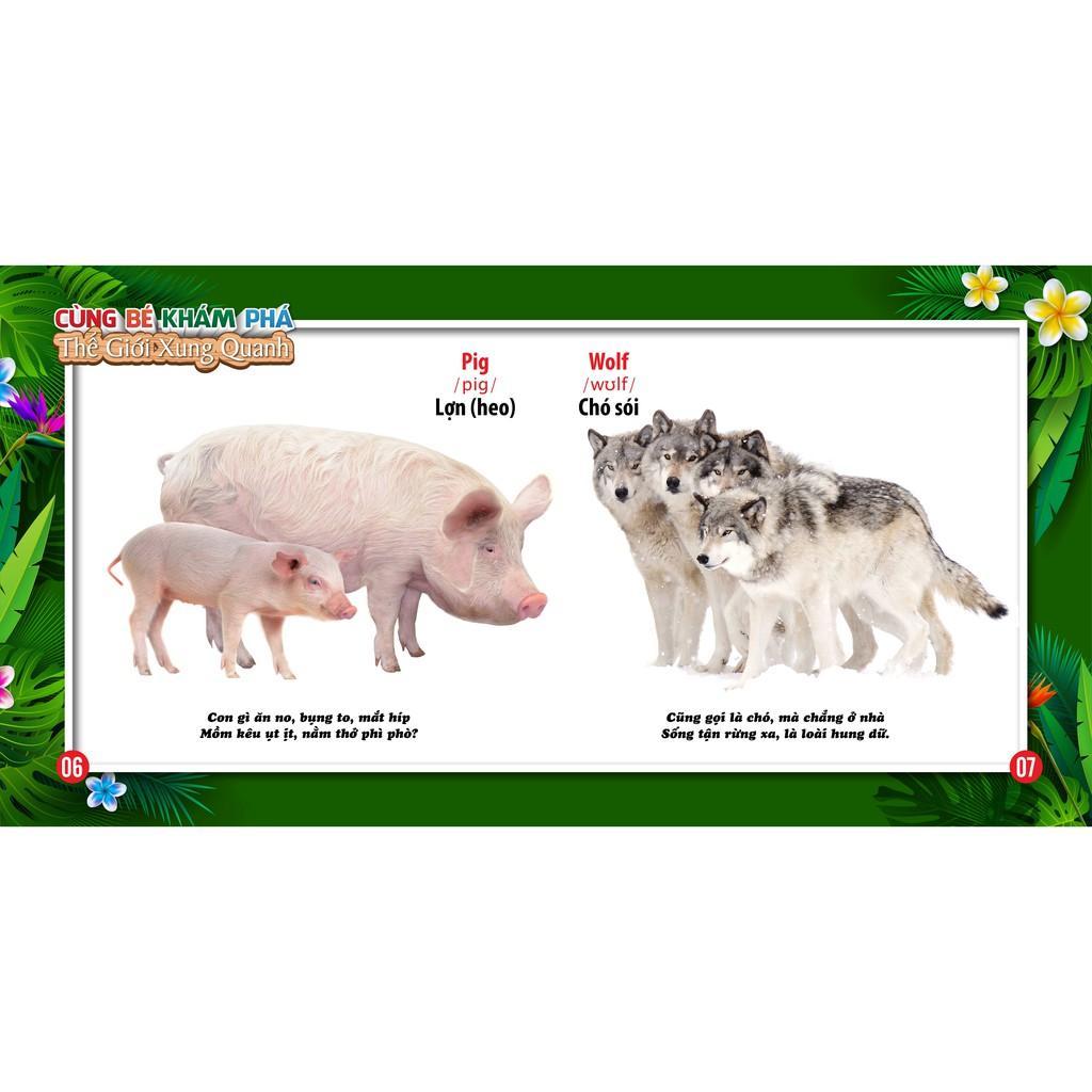 Bộ sách “Cùng bé khám phá thế giới xung quanh” là bộ sách song ngữ vì thế sẽ giúp trẻ làm quen với tiếng Anh, phát triển tư duy khái niệm về đồ vật, động vật, hoa, thế giới … phát triển ngôn ngữ, tình cảm xã hội…