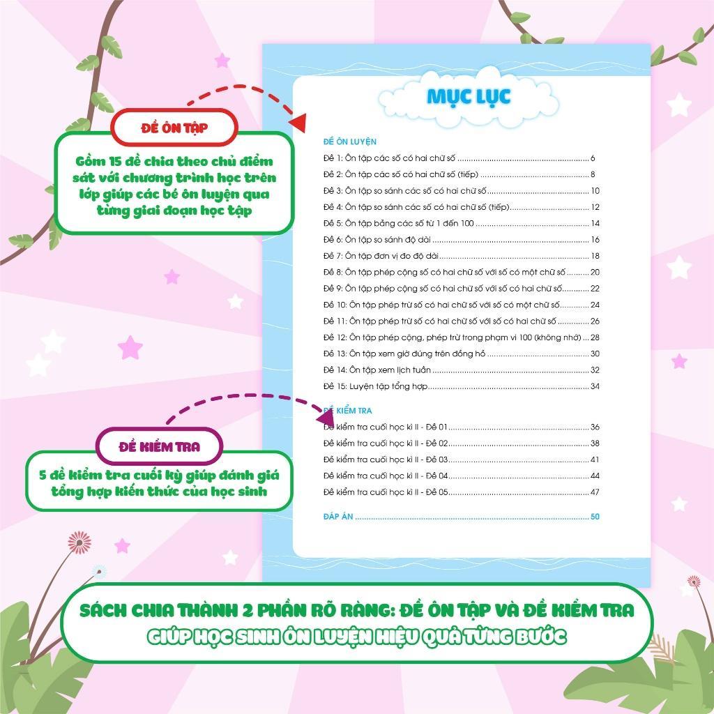 Đề ôn luyện và tự kiểm tra Toán lớp 1 tập 2 là một "trợ thủ" đắc lực giúp các em học sinh có thể tự ôn luyện sau mỗi giai đoạn học tập: ôn tập ngắn sau 2-3 tuần học, ôn tập giữa học kỳ và ôn tập cuối học kỳ - cuối năm học.