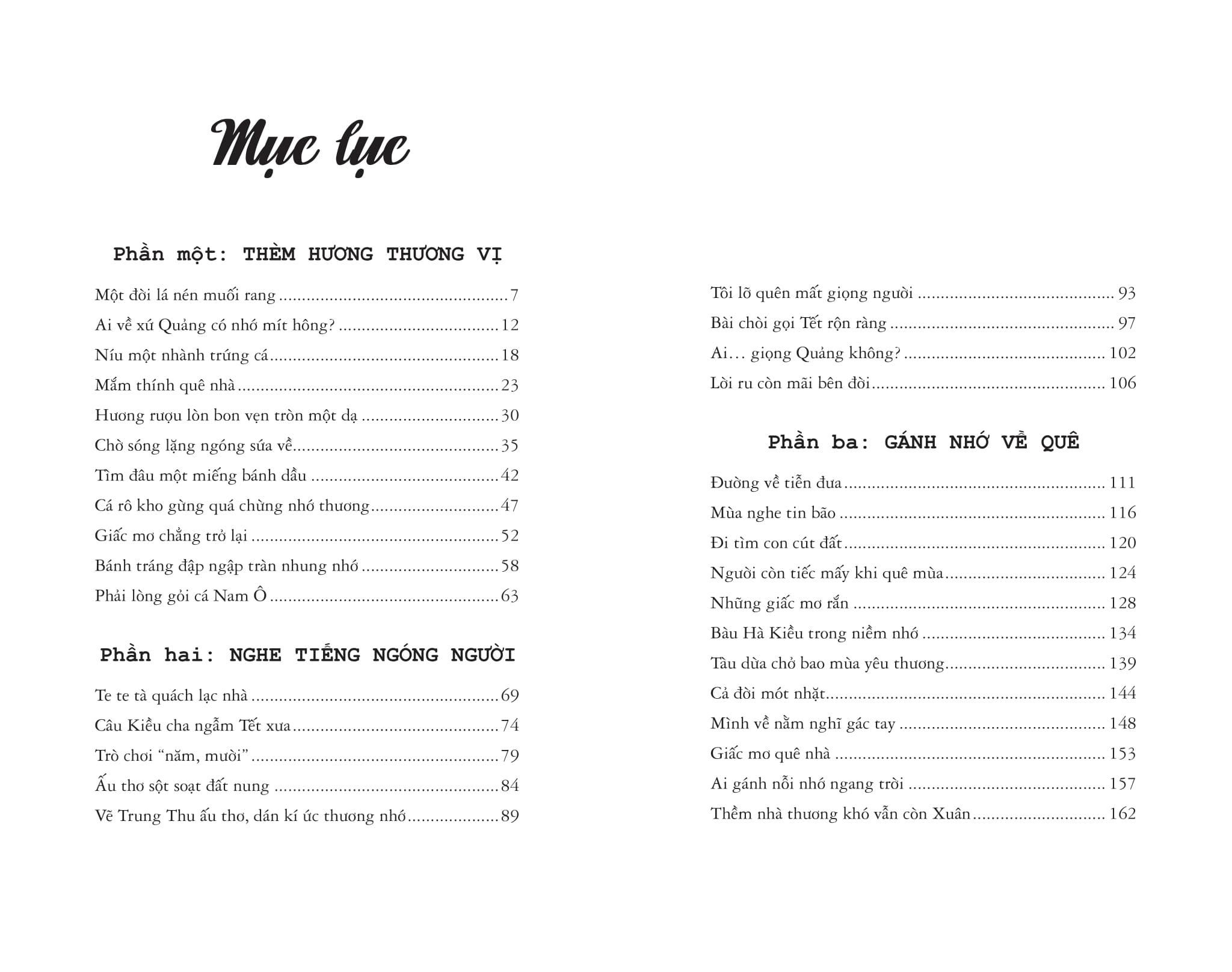 Kí ức là chất liệu, thời cuộc là sợi dây dẫn dắt ta đi qua từng trang viết trong Gánh nhớ ngang trời. Từ những hương vị quê nhà, âm vang tiếng nói bản quán gợi niềm ngóng vọng cố hương, đến những kỉ niệm về gia đình thân yêu, về hồn người nơi chốn cũ – tất cả hòa quyện thành một miền tuổi thơ đong đầy yêu thương, đượm hồn xứ Quảng mặn mà, nồng cay.