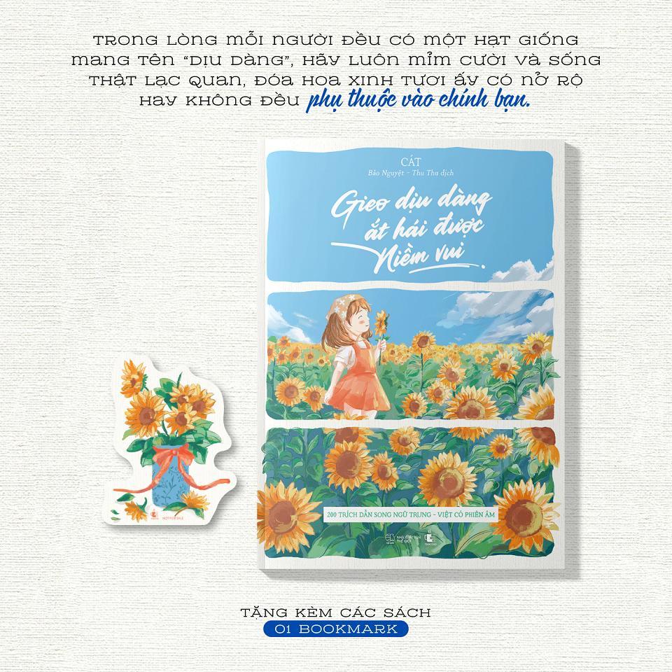 Gieo Dịu Dàng Ắt Hái Được Niềm Vui - 200 Trích Dẫn Song Ngữ Trung - Việt Có Phiên Âm Tác giả Cát Dịch giả Bảo Nguyệt – Thu Thu Thể loại Song ngữ, chữa lành Kích thước 13x18 cm Nhà xuấ...