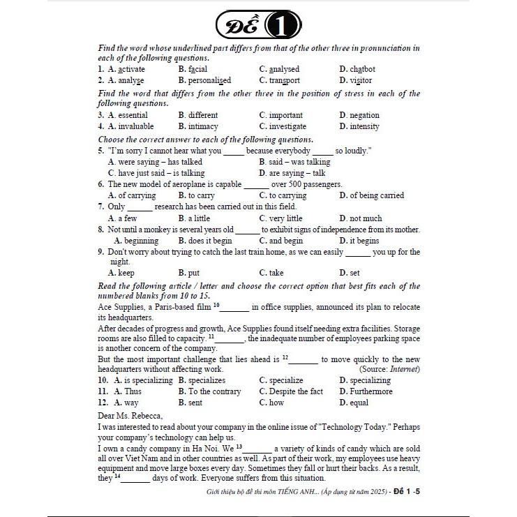 Sách - Giới thiệu bộ đề thi môn tiếng anh tốt nghiệp THPT (theo chương trình GDPT mới - áp dụng từ năm 2025) - HA Các em học sinh thân mến! Cuốn sách Giới