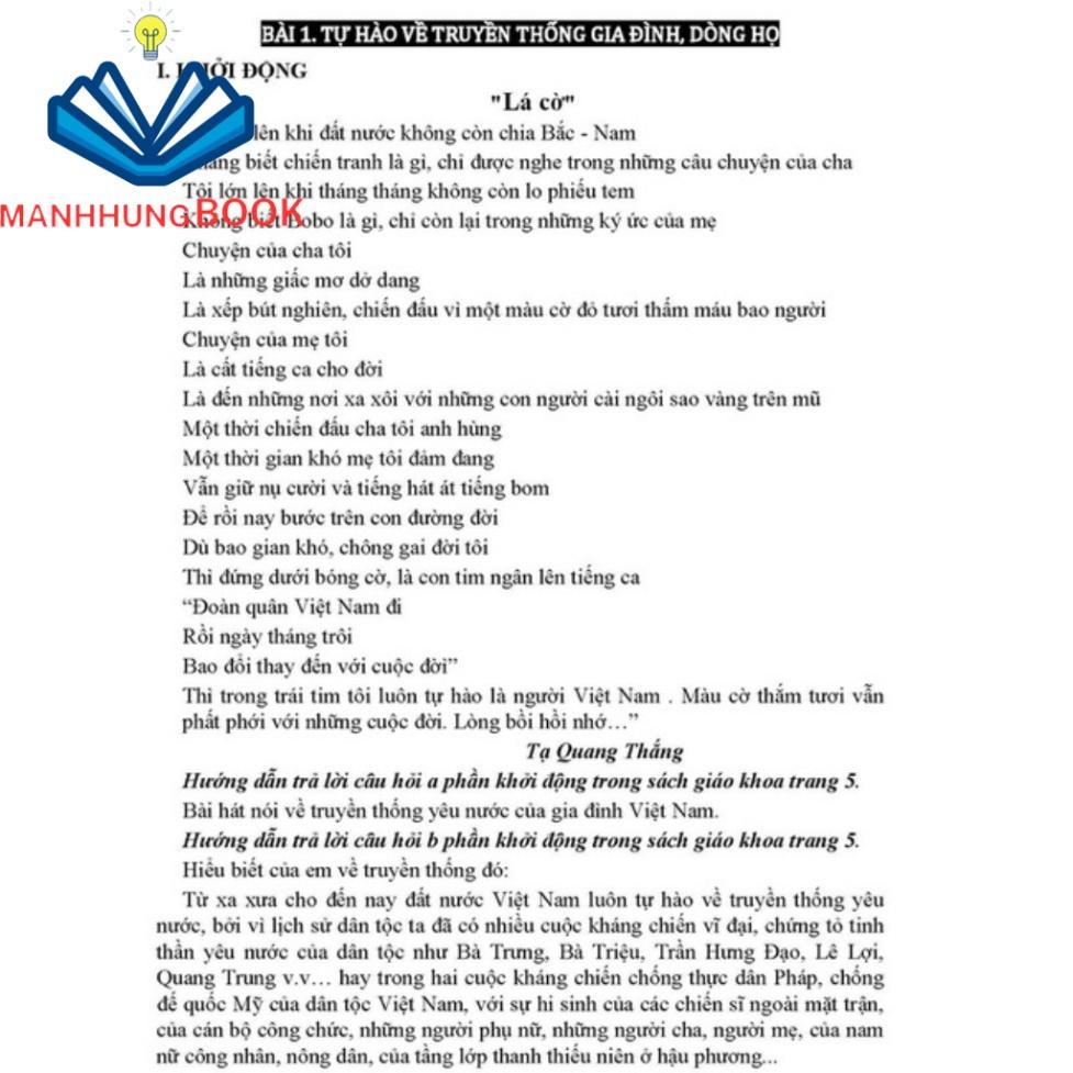 Sách - Hướng Dẫn Trả Lời Câu Hỏi Và Bài Tập Giáo Dục Công Dân Lớp 6 (Bám Sát SGK Kết Nối Tri Thức Với Cuộc Sống) Cuốn sách Hướng Dẫn Trả Lời Câu Hỏi Và Bài Tập Giáo Dục Công Dân Lớp 6 được viết từng bài, hướng dẫn trả lời các câu hỏi và bài tập trong sách giáo khoa. Ngoài ra chúng tôi đưa vào sách những câu hỏi, bài tập khó, những chuyện có thật, những tấm gương người tốt việc tốt để giúp các em tham khảo mẫu, nhằm nâng cao nội dung bài học, phát huy tính tích cực chủ động của các em trong việc lĩnh hội kiến thức, chuẩn bị bài mới trước khi đến lớp.