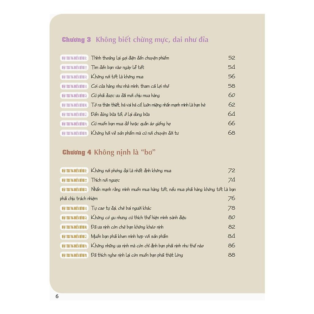 Cuốn sách này giới thiệu 10 kiểu khách hàng điển hình, được chia thành 90 ví dụ khác nhau nhằm giúp những người bán hàng như bạn có thể nhanh chóng chốt đơn hàng với khách. Đôi khi khách hàng thực sự có nhu cầu muốn mua , nhưng do người bán không hiểu được nhu cầu của khách nên đơn hàng đã “ dâng tận miệng “ cuối cùng lại để cho người khác cướp mất. Cuốn sách này sẽ giúp bạn biệt cách làm sao để có thể bán hàng một cách khéo léo và linh hoạt nhất.