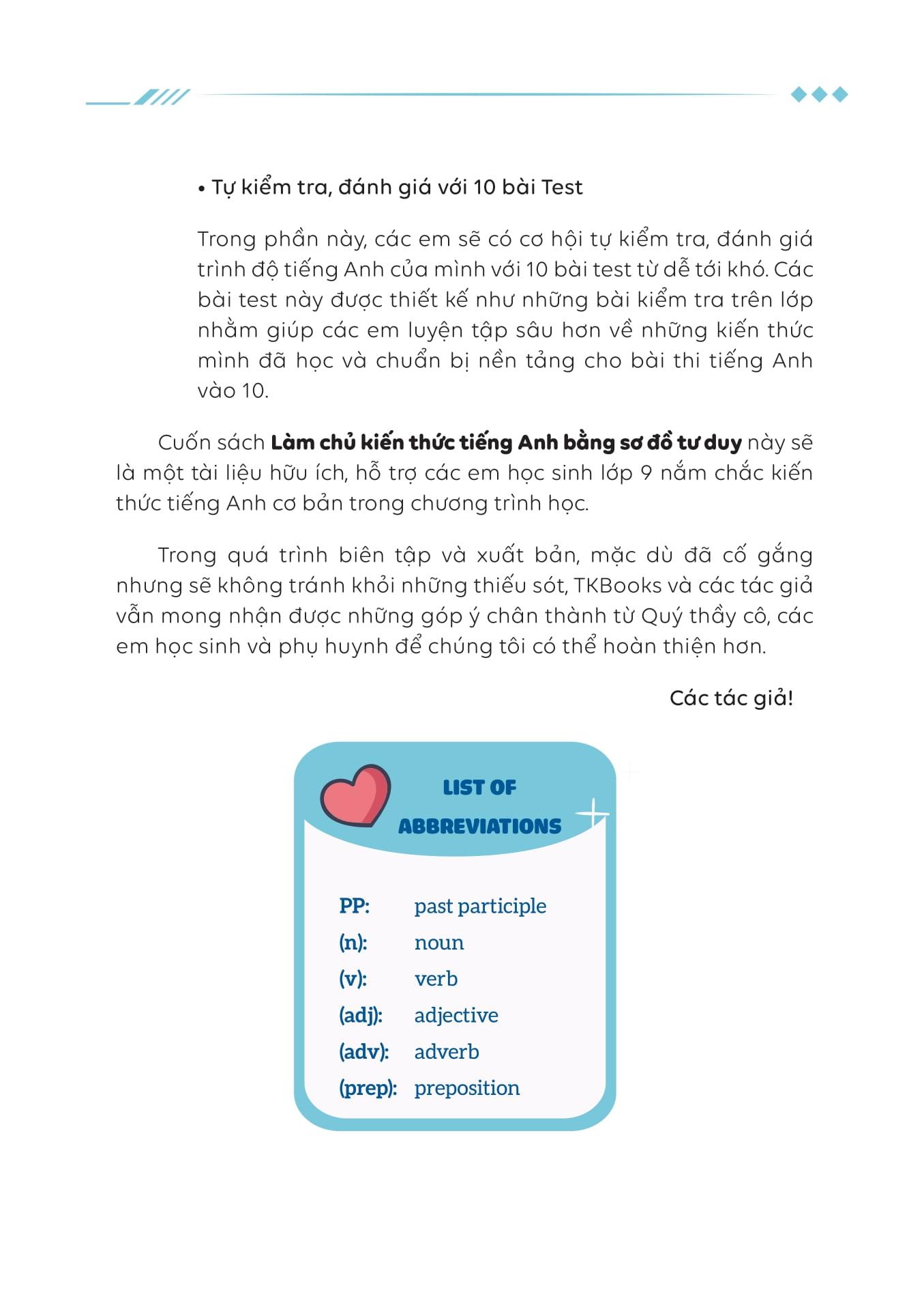 Làm Chủ Kiến Thức Tiếng Anh Bằng Sơ Đồ Tư Duy - Lớp 9 Tập 1 Cuốn sách này hệ thống hóa các kiến thức Tiếng Anh lớp 9, giúp các em nắm chắc kiến