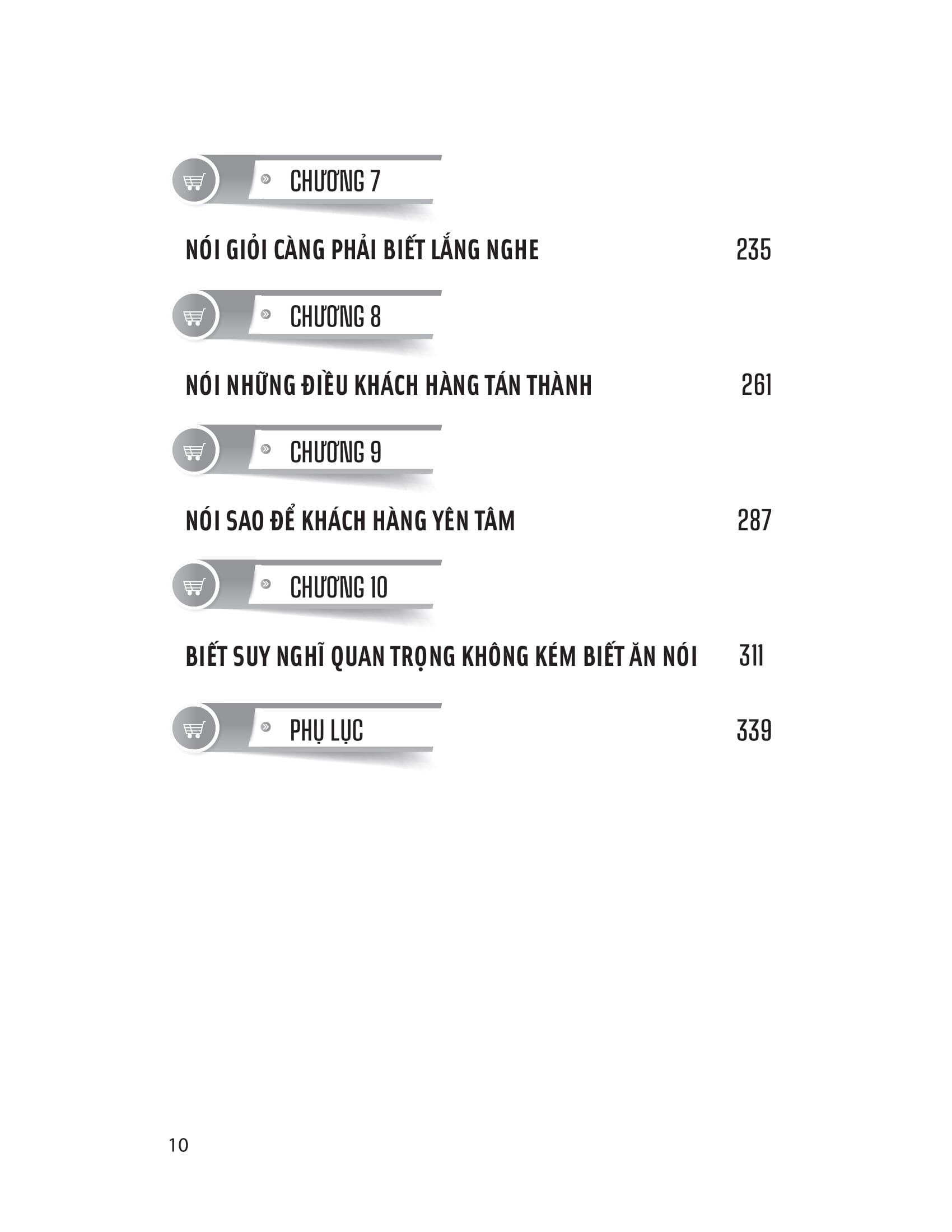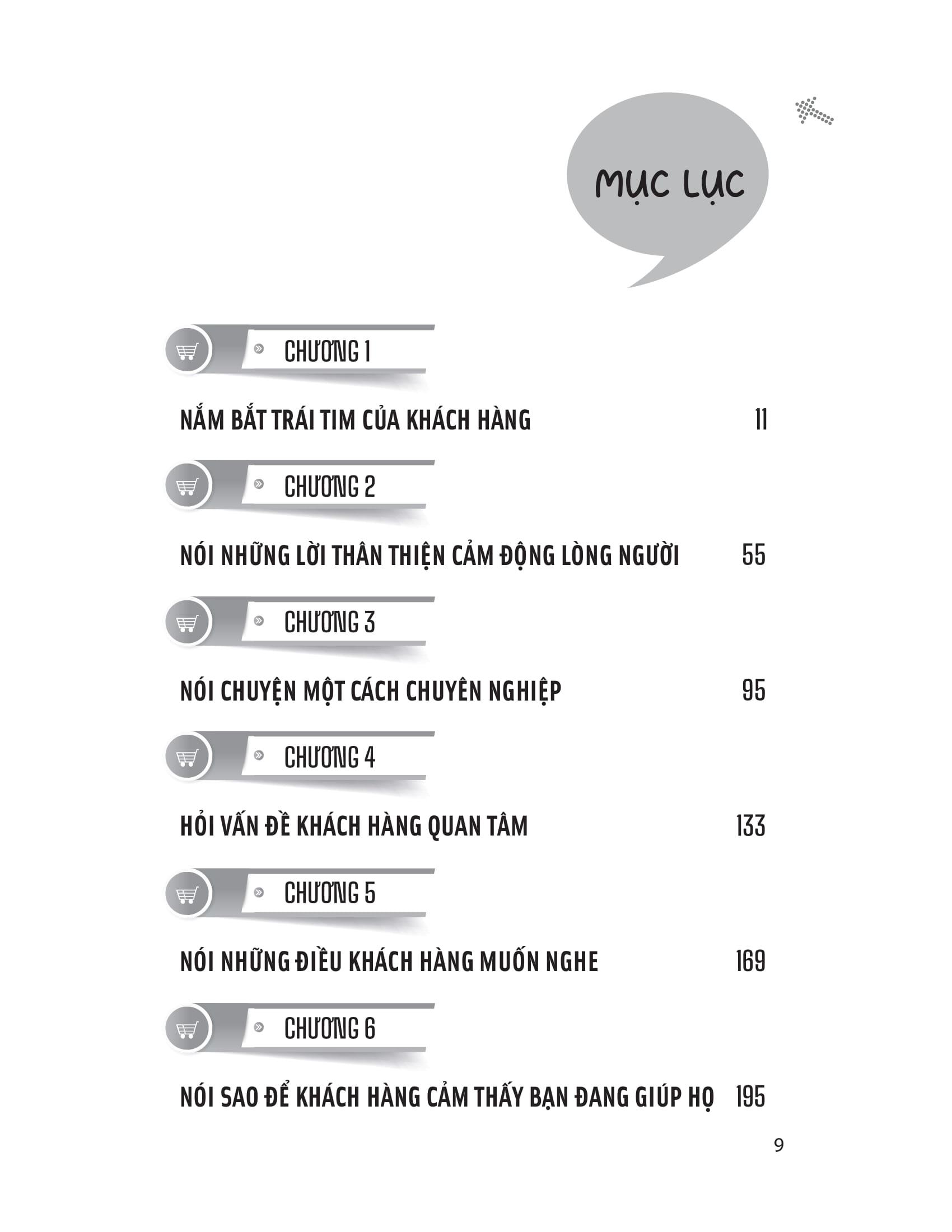 Cuốn sáchLời nói chạm đến tim khách hàngđưa ra rất nhiều ví dụ bán hàng thực tế để giải mã những lời khuyên của các bậc thầy bán hàng trong cách nói chuyện và đám phán cho những người sắp tham gia hoặc hiện đang tham gia vào công việc bán hàng. Bên cạnh đó, cuốn sách cung cấp những phương pháp thực tế và cụ thể để hướng dẫn mọi người cách vận dụng những lời khuyên này, từ đó nắm vững kĩ năng bán hàng xuất sắc!