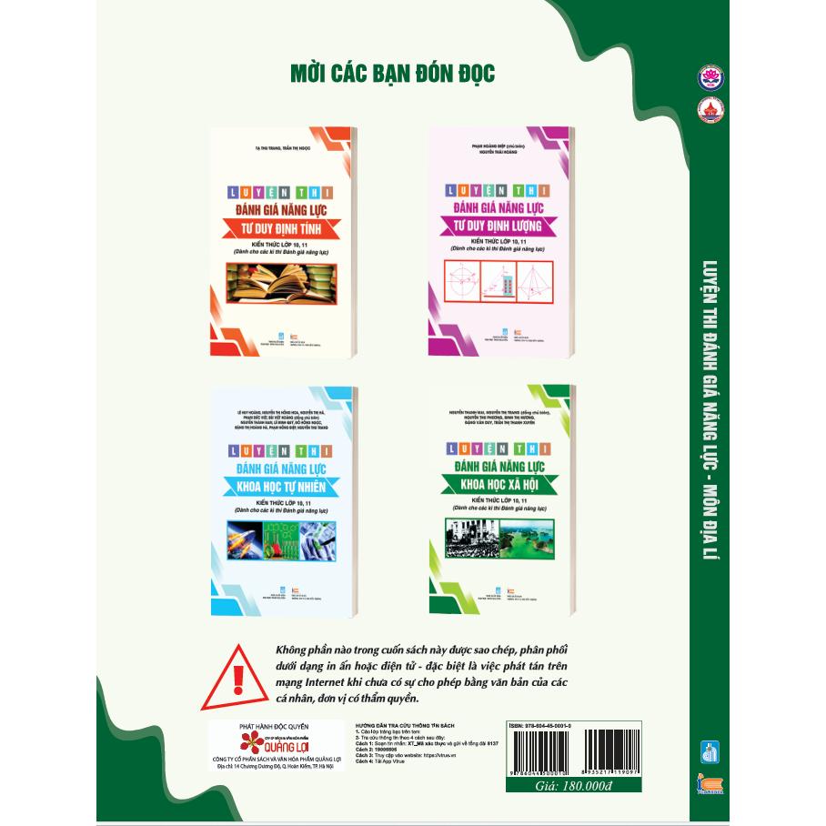 triển tư duy, rèn luyện kĩ năng thực hành; tiếp nối thành công của bộ sách Luyện thi đánh giá năng lực - Kiến thức lớp 10, 11; chúng tôi biên soạn bộ sách Luyện thi Đánh giá năng lực - Kiến thức lớp 12 gồm 8 cuốn.