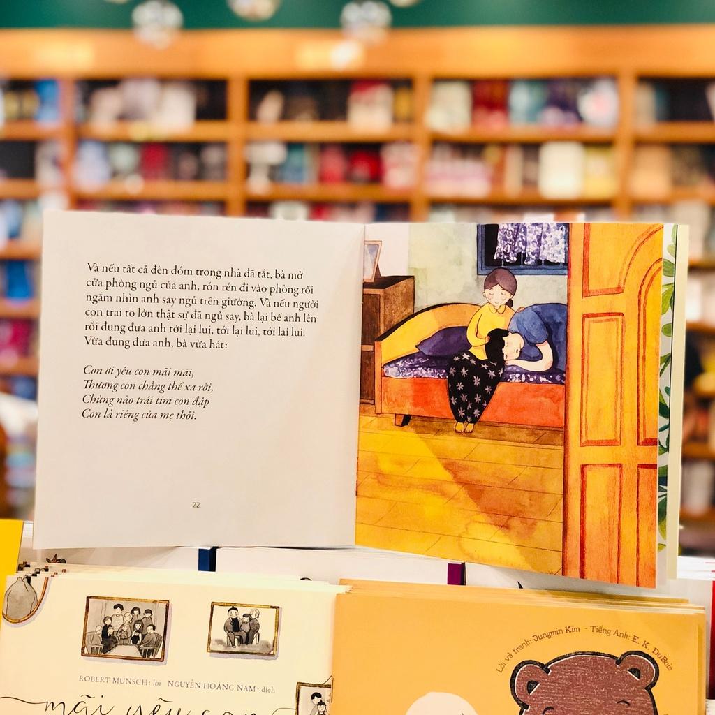 Tác giả: Robert Munsch Dịch giả: Nguyễn Hoàng Nam Nhà xuất bản: Hội nhà văn Số trang: 31 Kích thước: 20.5 x 20.5 cm Ngày phát hành: 07-2018 MỘT TÁC PHẨM TRANH KINH ĐIỂN, KỂ TỪ KHI XUẤT BẢN LẦN ĐẦU NĂM 1986 CHO TỚI NAY ĐÃ BÁN ĐƯỢC HƠN 15 TRIỆU BẢN TRÊN TOÀN THẾ GIỚI "Con ơi yêu con mãi mãi Thương con chẳng thể xa rời Chừng nào trái tim còn đập Con là riêng của mẹ thôi."