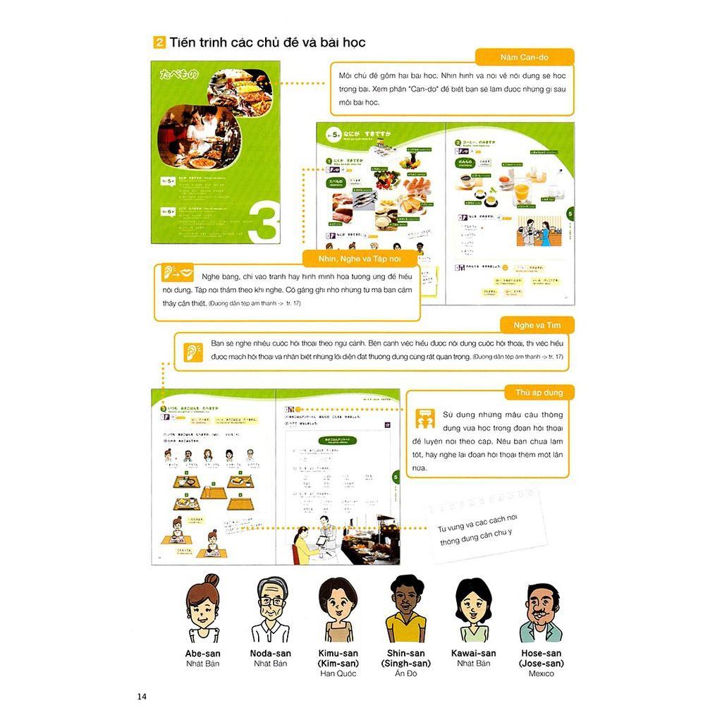 giáo trình giới thiệu những tình huống giao tiếp thực tế, giúp người học trải nghiệm nhiều khía cạnh đa dạng của văn hóa Nhật Bản và đặc trưng trong đời sống của người Nhật một cách trọn vẹn.