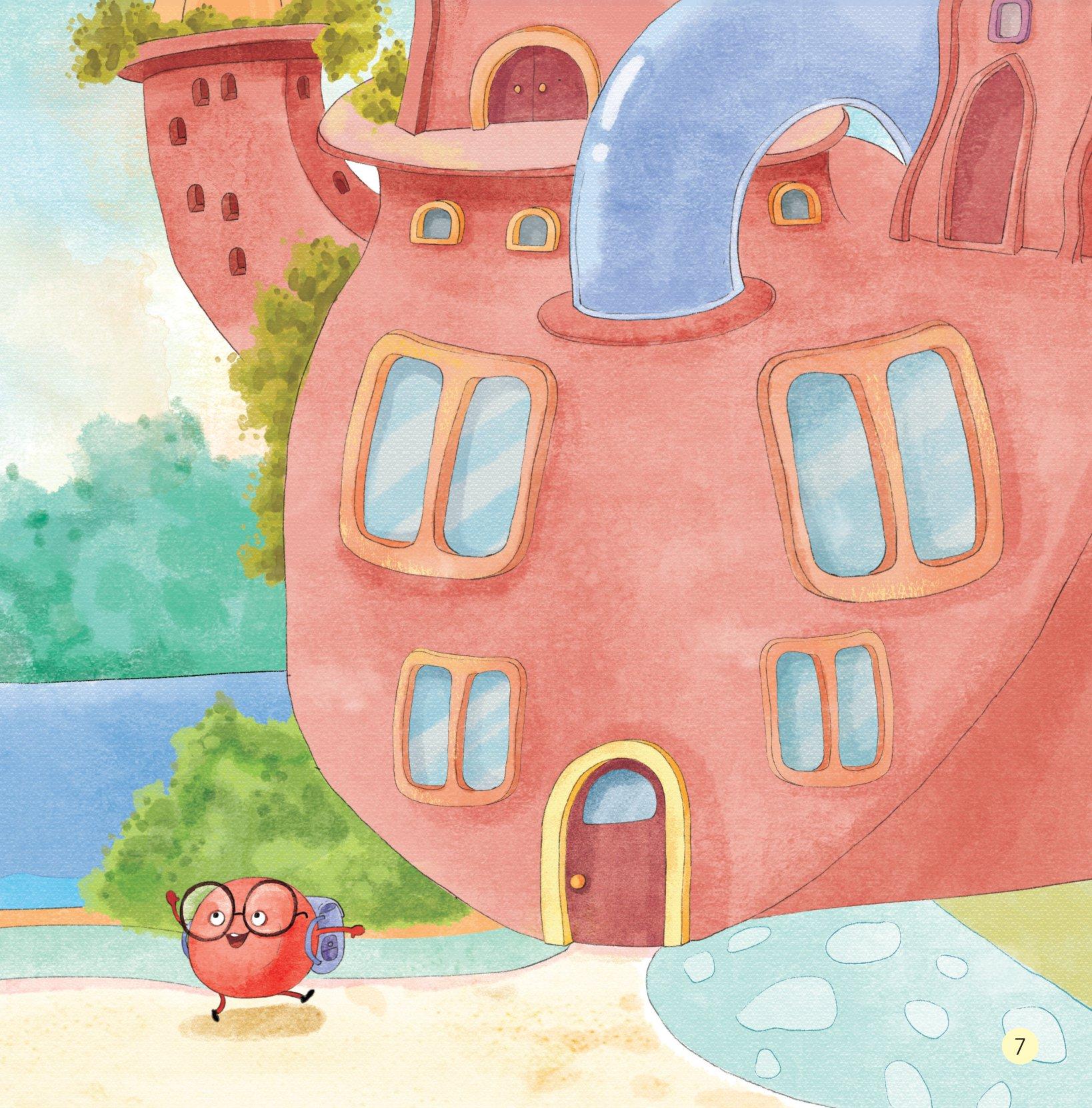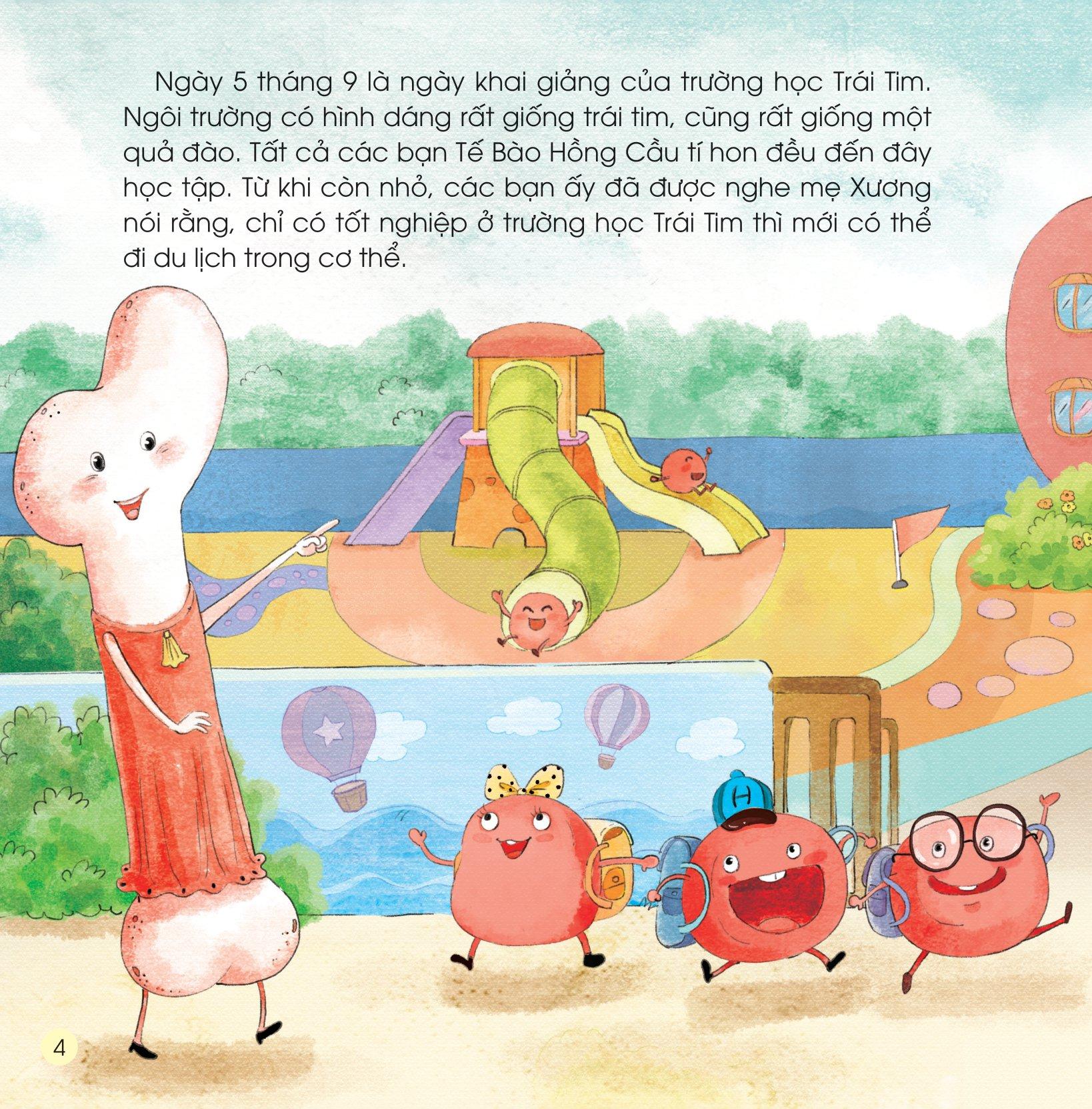 Ngôi trường có hình dáng rất giống trái tim, cũng rất giống một quả đào. Tất cả các bạn Tế Bào Hồng Cầu tí hon đều đến đây học tập. Từ khi còn nhỏ, các bạn ấy đã được nghe mẹ Xương nói rằng, chỉ có tốt nghiệp ở trường học Trái Tim thì mới có thể đi du lịch trong cơ thể.