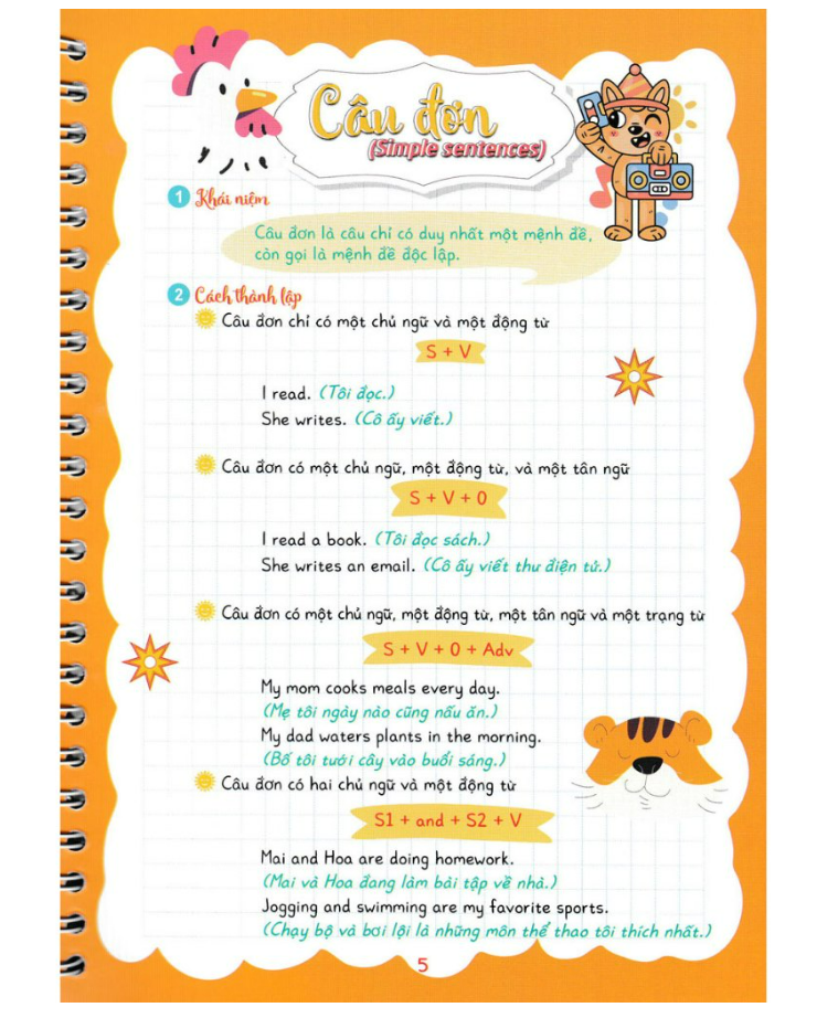 Sách tóm tắt các điểm ngữ pháp theo kiểu ghi chú ngắn gọn, giúp các em dễ dàng ghi nhớ khái niệm và cách thành lập câu đơn; phân biệt câu đơn với câu ghép; cách thành lập câu hỏi Có/Không, công thức và cách dùng các thì: các hình thức so sánh với like, different from, (not) as; cách dùng some, a lot of, và lots of cách đặt câu hỏi với How much và How many; cách dùng though/although và however, giới từ chỉ thời gian và nơi chốn; cùng các điểm ngữ pháp khác trong chương trình tiếng Anh lớp 7.