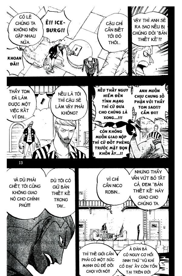 Vì muốn giải cứu Robin nên Sanji đã lén thâm nhập vào Tàu hỏa trên biển. Mặt khác, trên hòn đảo sắp bị triều cường dâng ngập, mọi người vẫn tiếp tục tìm kiếm Zoro và Luffy. Rốt cuộc họ đang ở đâu... Đúng lúc ấy, Aqua Laguna bất ngờ ập tới!?