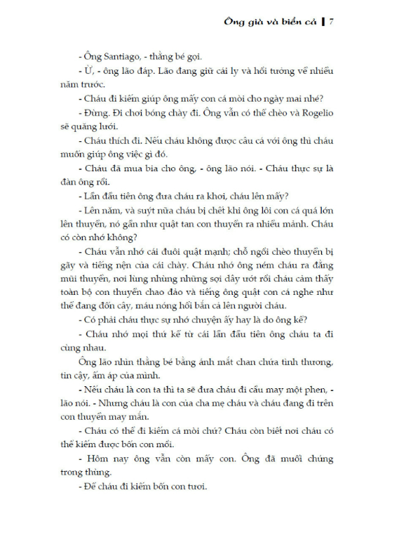 Văn phong của Hemingway giản dị, trong sáng, ẩn chứa nhiều triết lý sâu sắc về tự nhiên và con người. chất liệu sống ngồn ngộn, độc thoại nội tâm, tình huống biến hóa, căng thẳng, đa nghĩa và đa thanh.