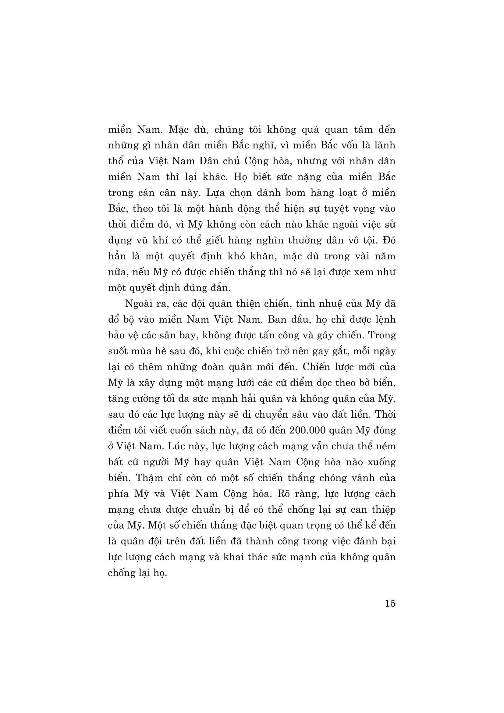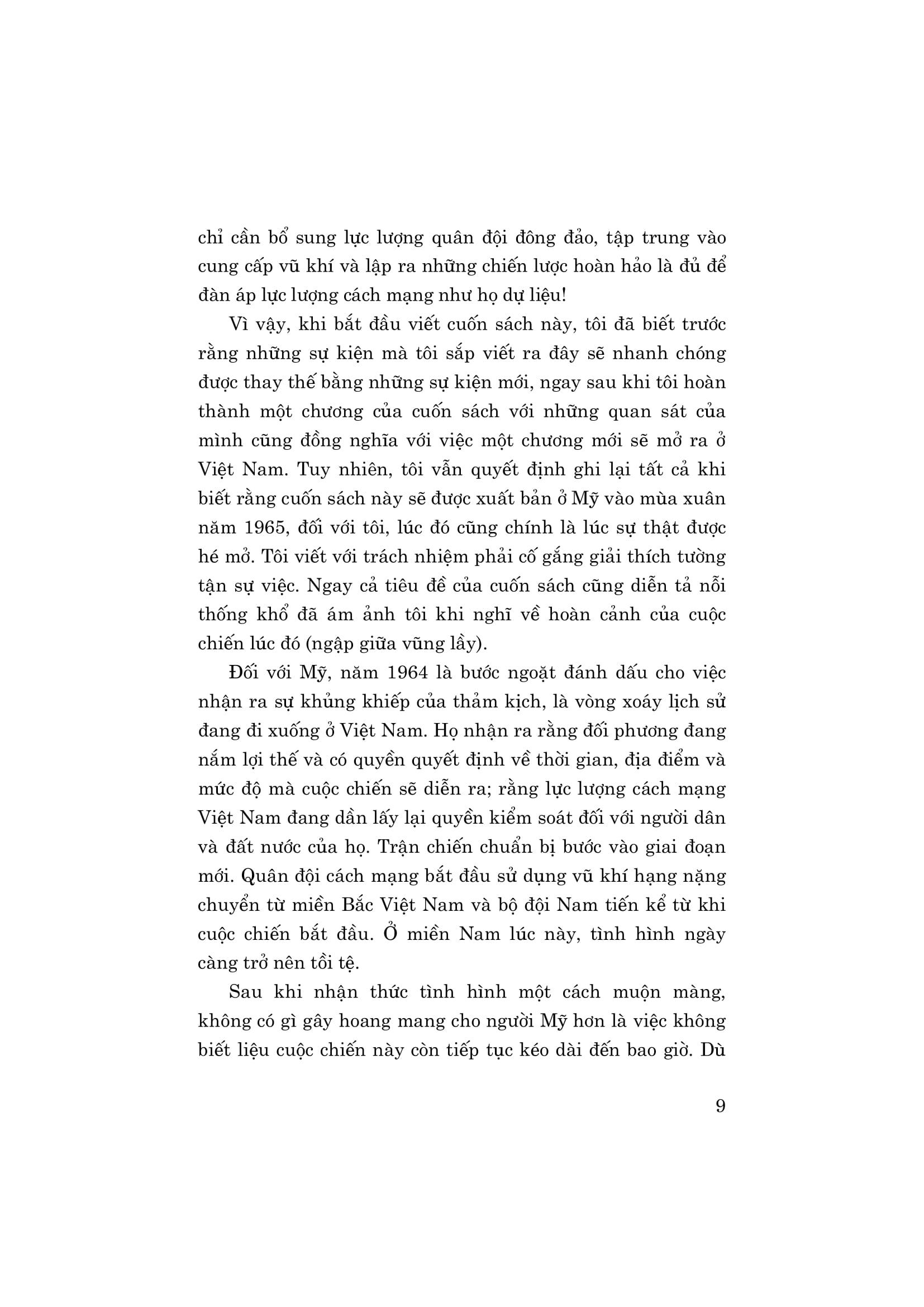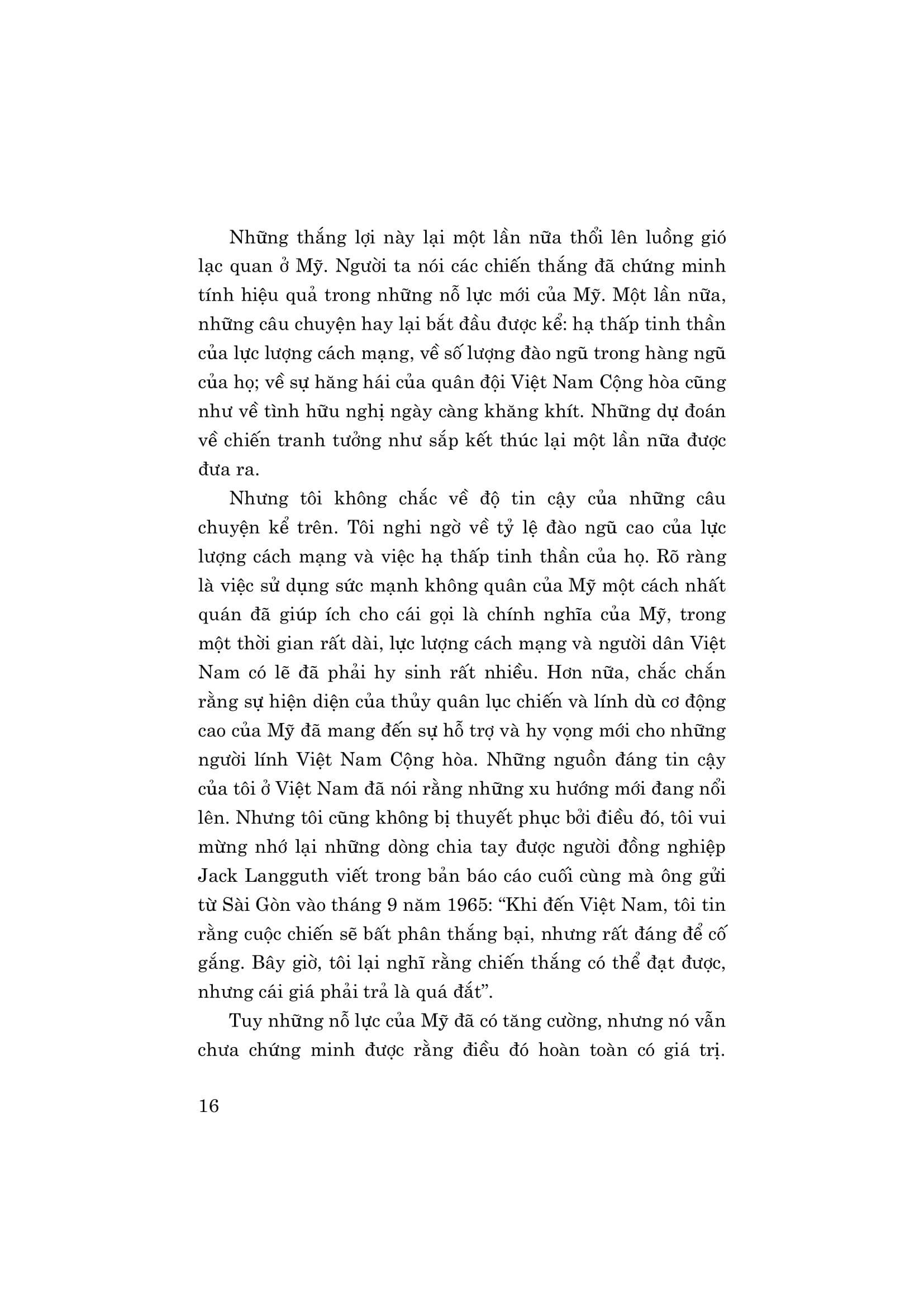 “Khi bắt đầu viết cuốn sách này, tôi đã biết trước rằng những sự kiện mà tôi sắp viết ra đây sẽ nhanh chóng được thay thế bằng những sự kiện mới trên thực tế, ngay sau khi tôi hoàn thành một chương của cuốn sách với những quan sát của m.ình cũng đồng nghĩa với việc một chương mới sẽ mở ra ở Việt Nam”. Ông nhìn nhận, phân tích và đánh giá khá thực tế, khách quan về Mỹ, dù có phương tiện chiến tranh hiện đại, nhưng sẽ không thể chiến thắng được tinh thần đấu tranh của lực lượng cách mạng Việt Nam nói riêng và nhân dân Việt Nam nói chung. Là một phóng viên chiến trường, ông thể hiện tinh thần chiến đấu chống chiến tranh phi nghĩa qua ngòi bút phê phán và lên án của m.ình. Ông viết: “Không một người Mỹ nào có thể trở về từ Việt Nam với cái đầu ngẩng cao và lương tâm trong sáng. Nếu có chút lương tâm, hẳn anh ta sẽ trở về nhà với một nỗi bất an sâu sắc, chưa kể đến những nỗi đau hay niềm thương cảm đối với đất nước này. Sự thất bại của Mỹ ở Đông Dương là một thử thách vô ích, tốn kém và đẫm máu”.