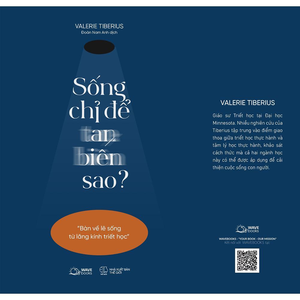 Khác với những cuốn sách Triết khó nhằn, Sống chỉ để tan biến sao? lại là một cuốn sách Triết được diễn giải hết sức dễ hiểu, kết hợp trải nghiệm riêng với những dẫn giải triết học song song với tâm lý học. Valerie Tiberius sẽ mang đến cho người đọc một lối tư duy đầy sâu sắc về những điều quan trọng trong cuộc sống. Để rồi thông qua đó, hướng dẫn chúng ta cách để đương đầu với những mâu thuẫn giữa các mục tiêu hay những bất đồng thường xảy ra trong cuộc sống.