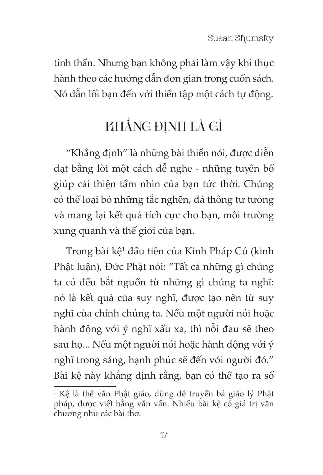 Thông qua những lời khẳng định tích cực và bài thiền được thiết kế chuyên sâu, cuốn sách dẫn dắt bạn thay đổi tư duy từ gốc rễ, xóa bỏ những niềm tin sai lầm rằng bạn không xứng đáng với sự giàu có. Bạn sẽ học cách kết nối với nguồn năng lượng dồi dào của vũ trụ, mở ra con đường thu hút thịnh vượng ở mọi khía cạnh: tài chính, tinh thần, cảm xúc và môi trường sống.