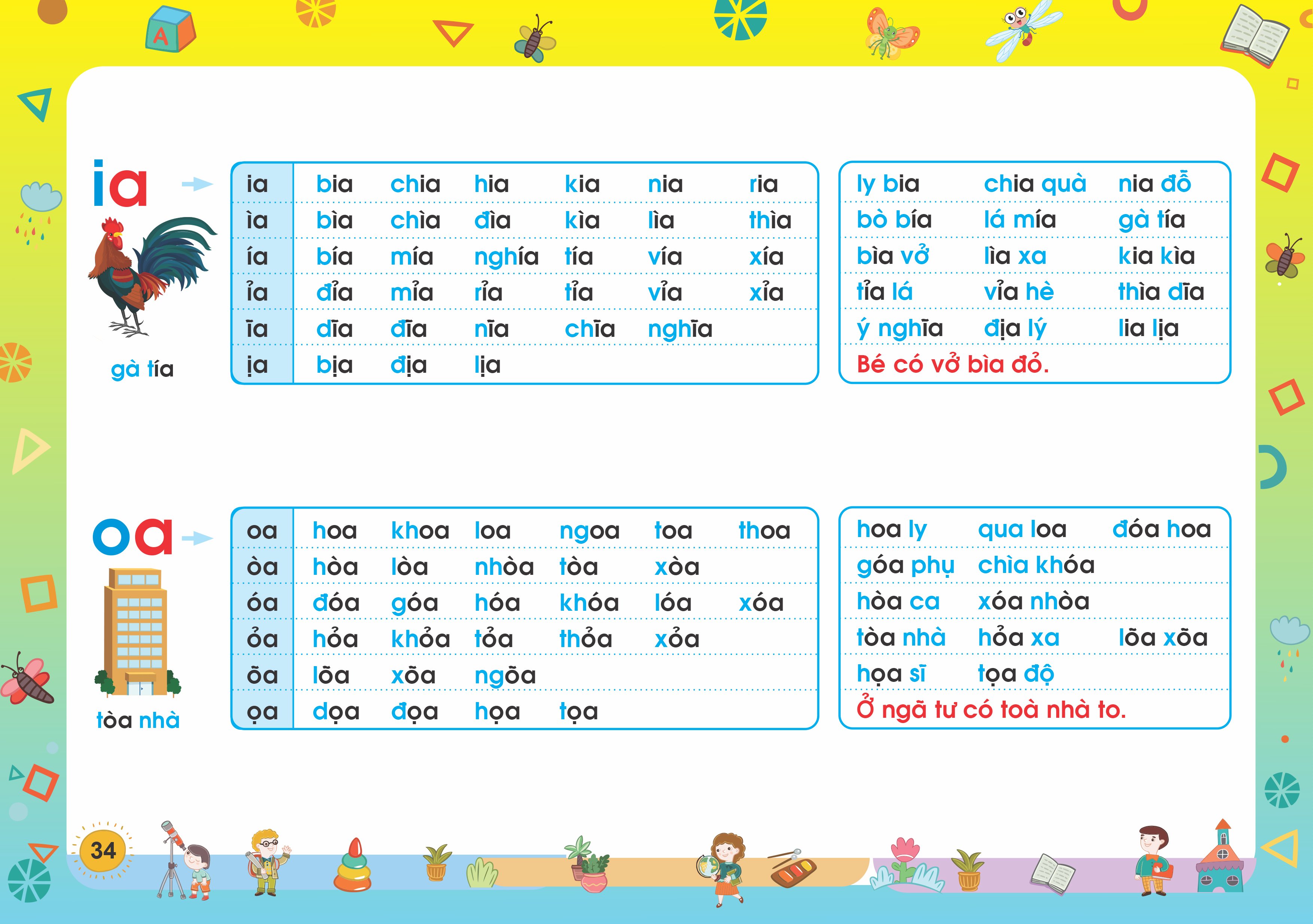 GIỚI THIỆU SÁCH “TẬP ĐÁNH VẦN TIẾNG VIỆT” DÀNH CHO ĐỘC GIẢ NHÍ ✿ Cuốn sách “Tập đánh vần tiếng Việt” được biên soạn nhằm rèn luyện kỹ năng đánh vần, đọc tiếng Việt trôi chảy, tạo nền tảng vững chắc giúp các em lĩnh hội kiến thức trong các môn học một cách dễ dàng ✿ Quyển sách gồm 2 phần: + Phần 1: Tập đánh vần. Trong phần này, bé sẽ làm quen với các nguyên âm và phụ âm để bé có nền tảng cơ bản cho việc đọc chữ. Sau đó bé sẽ được làm quen với việc ghép âm + Phần 2: Luyện đọc cuốn vở Đánh vần tiếng Việt với 100 trang cùng đầy đủ nội dung chữ cái cùng bộ học vần theo chương trình mới nhất. Bài học giới thiệu bảng chữ cái Tiếng Việt, dấu thanh và vần Tiếng Việt giúp các bé bước đầu làm quen với chữ viết và cách đánh vần Tiếng Việt. Mỗi bài học gồm các từ vựng, câu, đa dạng, bé tha hồ tập đánh vần, tập đọc mà không bị nhàm chán. Đặc biệt, các chữ in màu, vẽ sơ đồ cầu trúc từ đơn giản đến phức tạp cực kỳ dễ hiểu và logic cùng màu sắc tươi tắn khiến cho việc học trở nên thú vị hơn