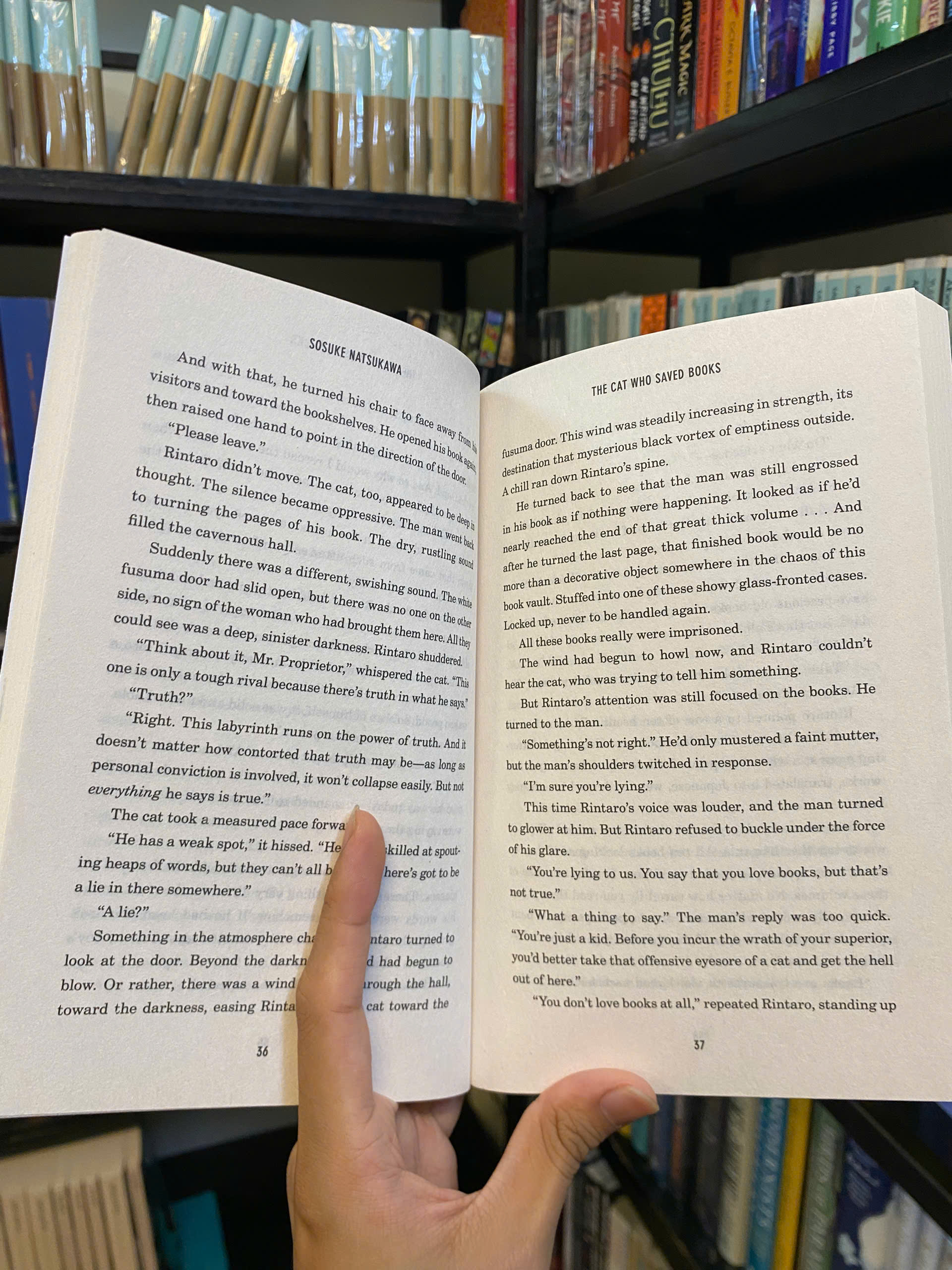Lễ tôn vinh sách, mèo và những người yêu quý chúng, thấm đẫm tinh thần ấm áp của The Guest Cat và The Traveling Cat Chronicles. Cậu học sinh trung học mọt sách Rintaro Natsuki sắp đóng cửa hiệu sách cũ mà cậu được thừa kế từ người ông mọt sách yêu quý của mình. Sau đó, một con mèo biết nói xuất hiện với một yêu cầu bất thường. Con mèo yêu cầu—hay đúng hơn là yêu cầu—sự giúp đỡ của cậu thiếu niên trong việc cùng mình cứu sách. Thế giới tràn ngập những cuốn sách cô độc chưa được đọc và không được yêu thích, chú mèo và Rintarou phải giải phóng chúng khỏi những người chủ bỏ bê chúng.