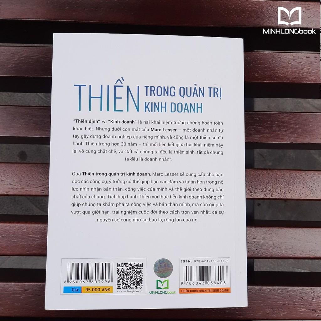 SÁCH: THIỀN TRONG QUẢN TRỊ KINH DOANH Tác giả : Marc Lesser Dịch giả :Nguyệt Minh NXB: NXB Thanh Niên Kích thước : Năm xuất bản : 2021 Số trang : 316 Bìa : bìa mềm Thiền Trong Quản Trị Kinh Doanh Thiền định và Kinh doanh là hai khái niệm tưởng chừng hoàn toàn khác biệt. Nhưng dưới con mắt của Marc Lesser - một doanh nhân tự tay gây dựng doanh nghiệp của mình, và cũng là một thiền sư đã hành Thiền trong hơn 30 năm - thì mối liên kết giữa hai khái niệm này lại vô cùng chặt chẽ, và “tất cả chúng ta đều là thiền sinh, tất cả chúng ta đều là doanh nhân”.