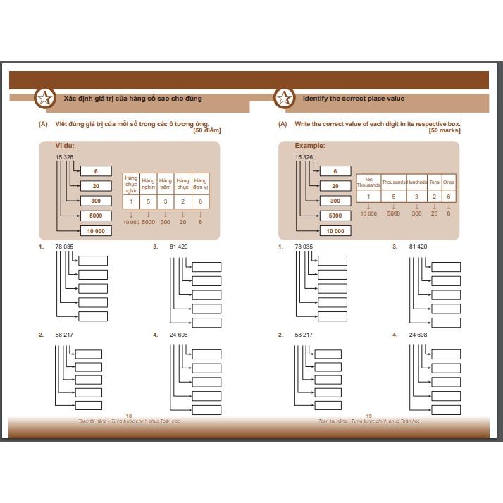 Sách: Toán Tài Năng 3 - Toán Lớp 3 - Dành cho học sinh từ 8-9 tuổi ( bộ 2 cuốn) - Tập 1 - 3A- Là sách song ngữ ( Việt – Anh) giúp trẻ vừa học toán vừa ôn luyện Tiếng Anh, giúp trẻ ghi nhớ từ vựng, họ...