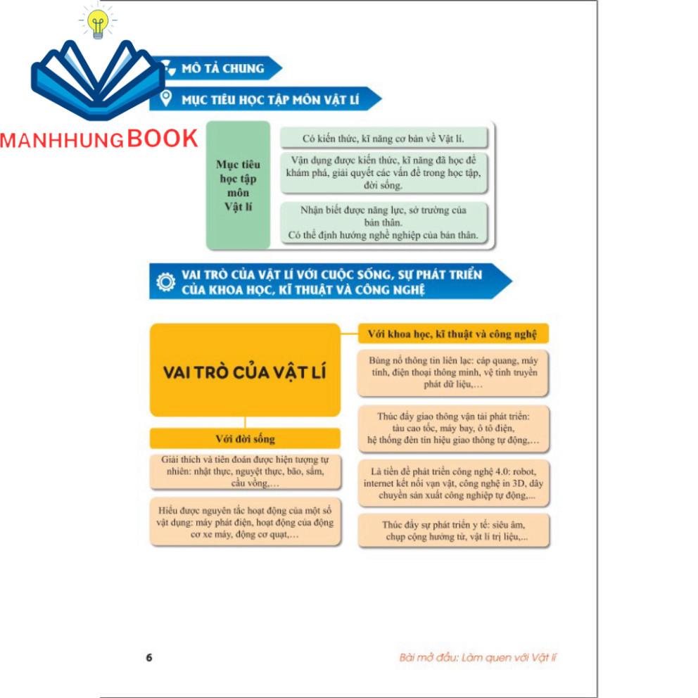 Nội dung cuốn sách tập trung phát triển cả ba thành phần năng lực của môn học cho các em, giúp các em nhận thức được kiến thức, kĩ năng phổ thông cốt lõi trong môn Vật lí như nêu được các đối tượng, khái niệm, hiện tượng, quy luật, quá trình vật li; trình bảy được các hiện tượng, quá trình vật lí; nêu được đặc điểm, vai trò của các hiện tượng, quả trình vật lí bằng các hình thức biểu đạt: nói, viết, đo, tính, vẽ, lập sơ đổ, biểu đồ và giải thích được mối quan hệ giữa các sự vật, hiện tượng, quá trình.