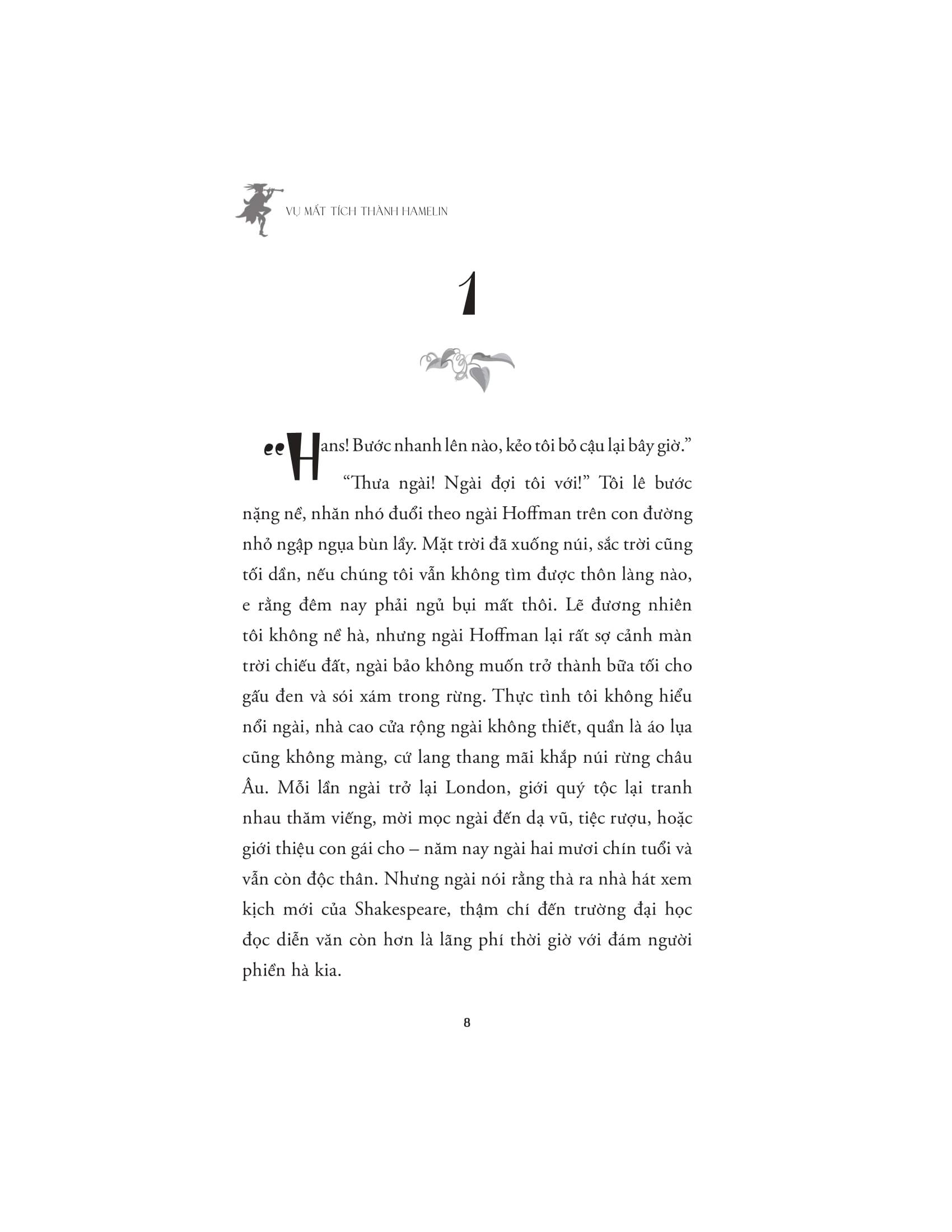 “Vụ mất tích thành Hamelin” là tuyển tập 3 truyện ngắn, bao gồm “Jack và cây đậu thần” – tác phẩm đầu tay của Chan Ho-Kei, “Mật thất của Râu Xanh” và “Vụ án cây sáo thần bắt cóc trẻ em ở Hamelin”. Trong cả 3 truyện ngắn trên, chúng ta sẽ theo chân ngài quý tộc Lyle Hoffman cùng cậu hầu cận Hans Christian Green rong ruổi khắp các miền quê châu Âu, lần lượt khám phá những bí ẩn thú vị.