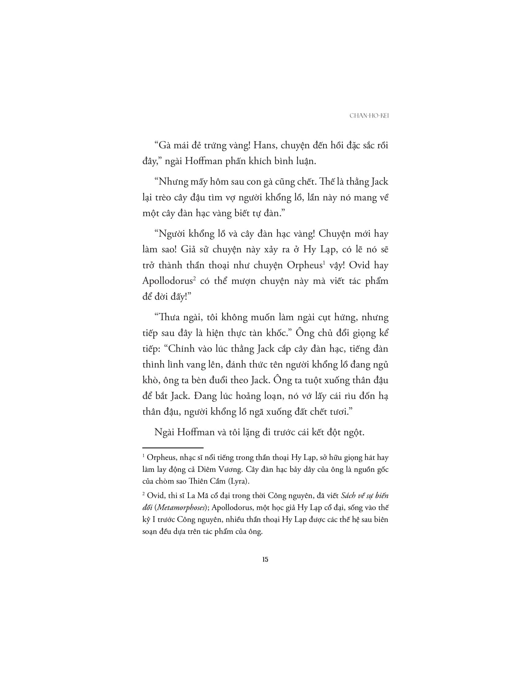Chan Ho-Kei đã áp dụng thế mạnh trinh thám của m.ình vào những câu chuyện cổ tích một cách đầy tài tình, từ đó giúp ta nhìn lại những câu chuyện gối đầu giường này dưới một góc nhìn khác biệt, thêm vào nhiều bước ngoặt mới mẻ, bóc tách và xây dựng các nhân vật quen thuộc trở nên đa chiều, sâu sắc hơn.
