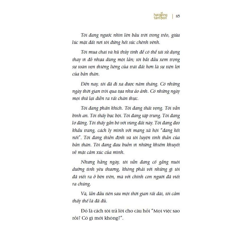 Sách cũng kể về những nỗi niềm trăn trở của người trẻ về khủng hoảng bản sắc cá nhân giữa một thế giới đề cao nhiều thành tựu hào nhoáng bên ngoài. Nhưng sau cùng, họ cũng hiểu ra rằng chỉ cần “chính mình là đủ”, rằng mọi thứ “vốn đã đủ đầy” và ta cần đối diện mọi thứ bằng lòng trân trọng và sự biết ơn.