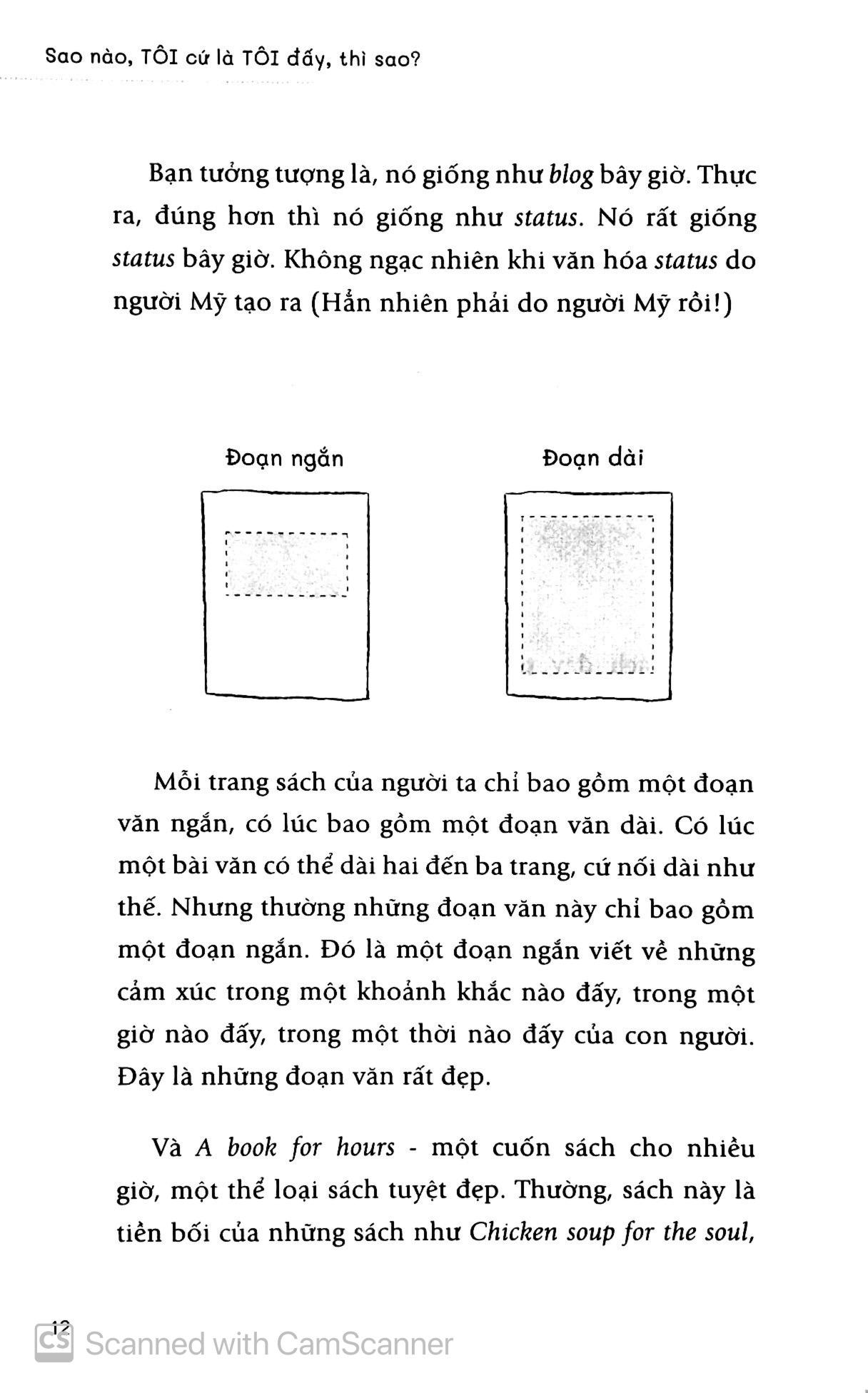 Cuốn sách này sẽ mang đến cho bạn khoảnh khắc ấy một lần nữa, khoảnh khắc khi cái-Tôi đích thật thức tỉnh, năng lượng sống tinh khôi ùa về, và bạn có thể bật cười thốt lên: SAO NÀO TÔI CỨ LÀ TÔI ĐẤY THÌ SAO?