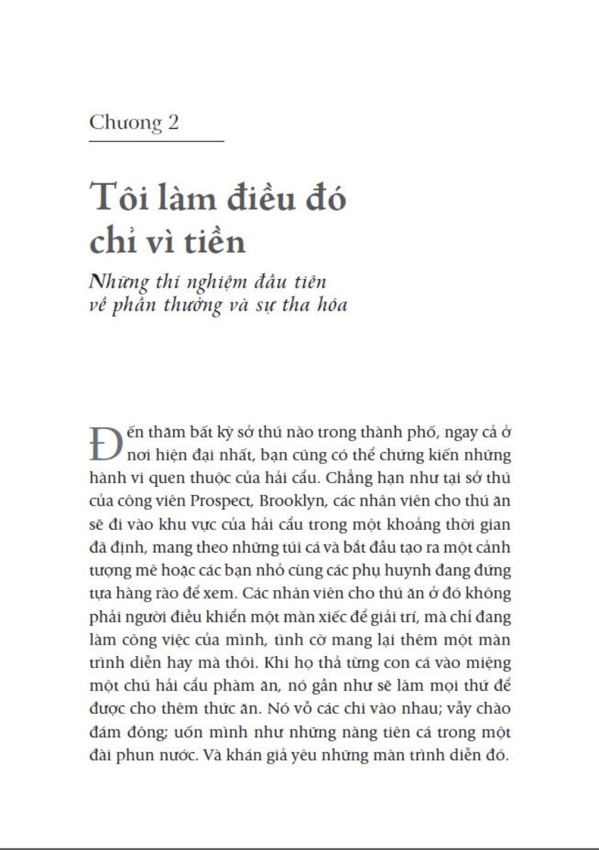Có nhiều hiểu lầm về những thứ có thể tạo động lực cho hành vi con người, trong đó hai hiểu lầm cơ bản nhất là phần thưởng và hình phạt. Hình phạt hiển nhiên là thứ có tính kiểm soát, và vì vậy nó làm xói mòn động lực. Nhưng trái với suy nghĩ của nhiều người, phần thưởng là động lực bên ngoài, và nó cũng làm suy yếu động lực nội tại – sức sống, sự tự nguyện, tính chân thật và hiếu kỳ vốn nằm trong bản chất của con người.