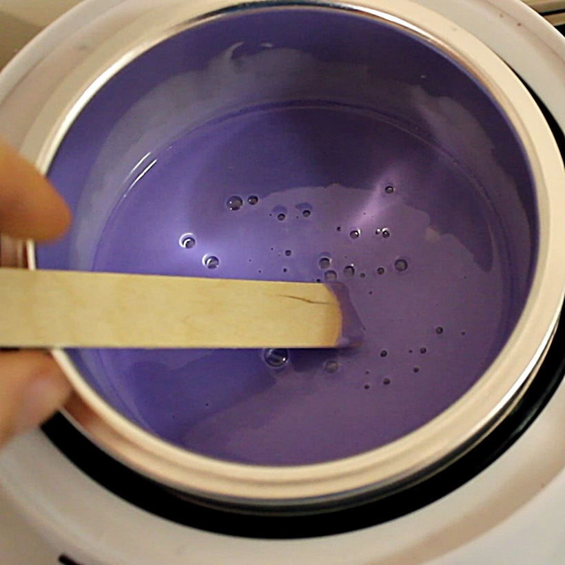 - Đun cho sáp nóng chảy ra bằng nồi đun sáp, lò vi sóng. Không nên quay quá lâu vì sáp có thể nóng hơn 70 độ, dễ gây bỏng da.