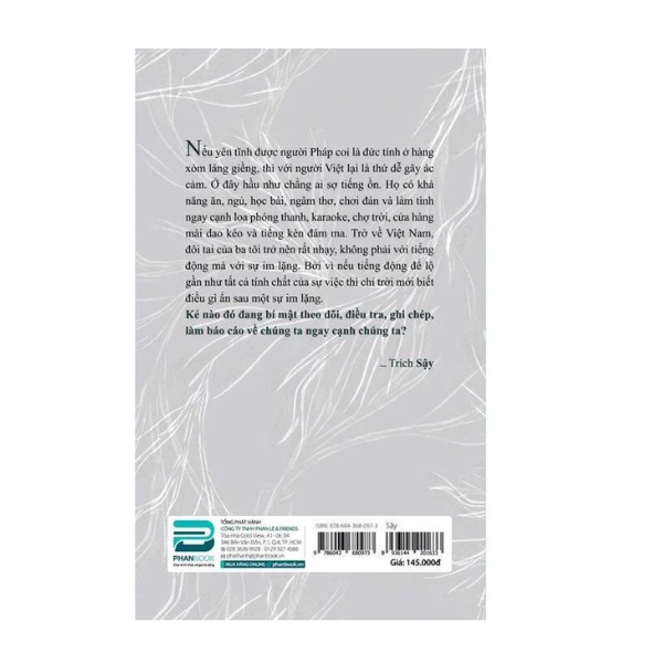 “Nếu yên tĩnh được người Pháp coi là đức tính ở hàng xóm láng giềng, thì với người Việt lại là thứ dễ gây ác cảm. Ở đây hầu như chẳng ai sợ tiếng ồn. Họ có khả năng ăn, ngủ, học bài, ngâm thơ, chơi đàn và làm tình ngay cạnh loa phóng thanh, karaoke, chợ trời, cửa hàng mài dao kéo và tiếng kèn đám ma. Trở về Việt Nam, đôi tai của ba tôi trở nên rất nhạy, không phải với tiếng động mà với sự im lặng. Bởi vì nếu tiếng động để lộ gần như tất cả tính chất của sự việc thì chỉ có trời mới biết điều gì ẩn sau một sự im lặng.