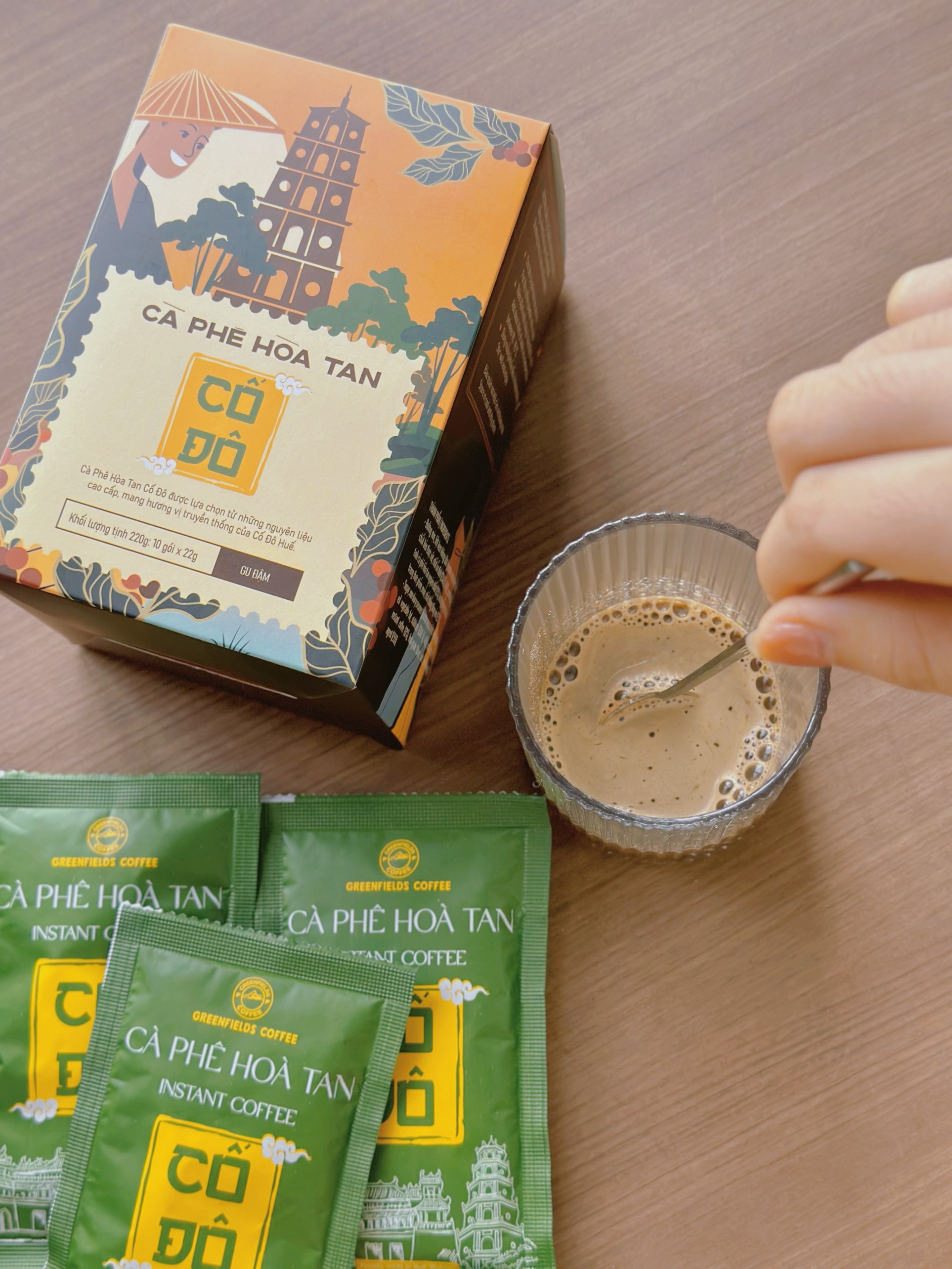 2 hộp cà phê hoà tan: 1 hộp cà phê Cố Đô gu đậm (hộp 10 gói x 22g) và 1 hộp cà phê hoà tan Cố Đô gu thơm (hộp 10 gói x 22g)