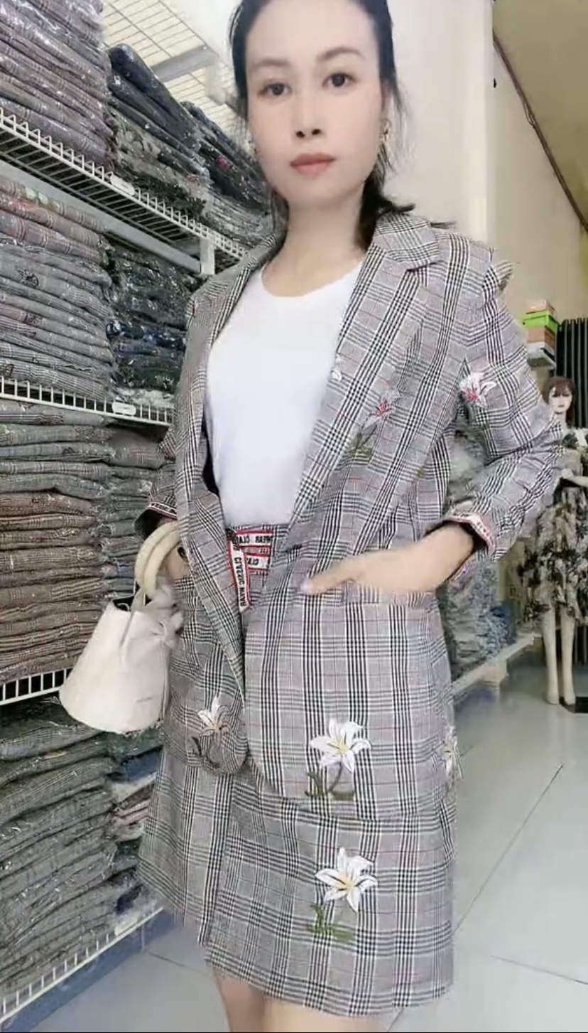 Set đồ công sở áo vest và chân váy, chất cát trượt đẹp