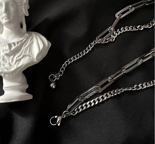 ✨Set vòng cổ và vòng tay chuỗi xích titan thép không đen phong cách đường phố