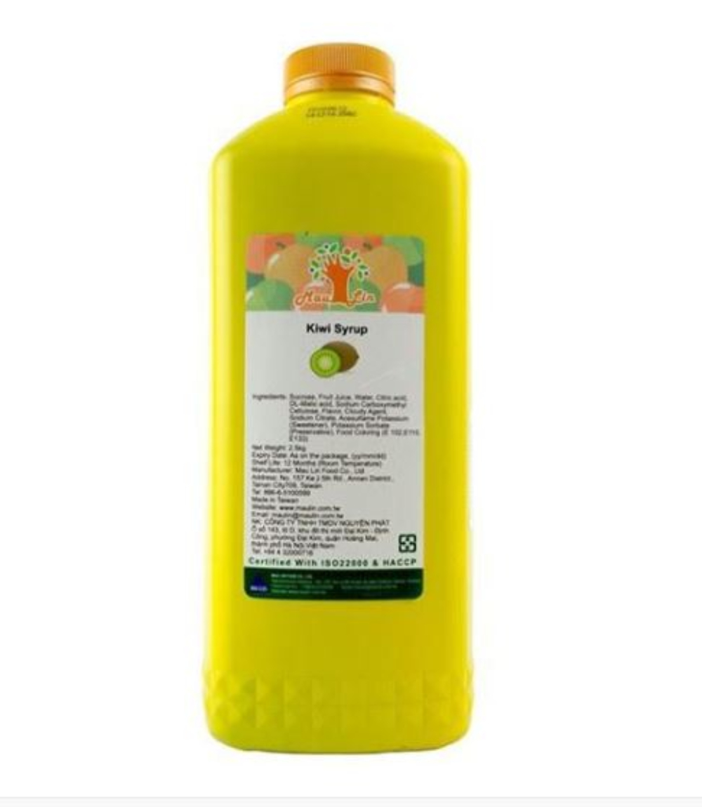 Siro Kiwi Maulin (Mau Lin Kiwi Syrup) – Chai 2.5 Kg Siro Maulin Kiwi (Mau Lin Kiwi Syrup) – Nguyên liêu pha chế với hương vị thơm ngon tuyệt vời giúp bạn thỏa sức sáng tạo trong việc pha chế đồ uống. Siro Maulin Kiwi phù hợp pha chế nhiều món đồ uống  nhưng chúng được ưa chuộng nhất có lẽ là trà sữa. Bởi vì hương vị kiwi đậm đà, độ thơm ngon hoàn hảo chỉ cần dùng với một lượng nhỏ bạn đã có thể cảm nhận được hương vị thơm ngon của chúng. Kiwi – tiếng Việt là quả ki-wi, thuộc họ dương đào, được tuyên bố là quả quốc gia của Trung Quốc. Loại quả này rất giàu vitamin C, và chất chống oxi hóa. Quả kiwi nổi bật với màu sắc bắt mắt, mùi vị thơm ngon đặc biệt. Hơn thế nữa, đây là trái quả thuộc top những quả bổ dưỡng nhất bởi những vitamin trong chúng là những gì cơ thể cần thiết và bổ sung hàng ngày. Cũng chính vì lý do này mà siro kiwi trở thành nguyên liệu pha chế thức uống được rất nhiều người yêu thích. Được biết đến là thương hiệu hàng đầu của Đài Loan Maulin đã thấu hiểu được mong muốn của khách hàng và cho ra mắt sản phẩm siro Kiwi. Với hương vị được đánh giá đậm đà hương hoa quả và thơm ngon nên siro kiwi Maulin không chỉ là sản phẩm được ưa thích trong nước. Chúng có mặt ở các Châu Á, một số ông lớn khó tính về VSATTP như Anh, Mỹ, Úc,… đem lại sự sáng tạo trong pha chế cho rất nhiều người. Ứng dụng của Siro Maulin Kiwi trong pha chế: Siro Maulin Kiwi là nguyên liệu pha chế chuyên dụng để pha chế trà sữa với hương thơm của Kiwi tự nhiên. Bạn có thể sử dụng siro kiwi của Maulin để pha chế trà sữa vị kiwi, hoặc có thể làm sinh tố đá xay hay hoa quả dầm. THÔNG SỐ SẢN PHẨM – Tên sản phẩm: Siro Kiwi – Kiwi Syrup. – Thành phần: đường, nước ép kiwi, nước, chất điều chỉnh độ acid, … – Hướng dẫn sử dụng: dùng để chế biến các món ăn, đồ uống. – Hạn sử dụng: 12 tháng kể từ ngày sản xuất. Hạn sử dụng và ngày sản xuất in trên bao bì của sản phẩm. – Bảo quản: để nơi thoáng mát tránh ánh nắng chiếu trực tiếp, sau khi mở nắp cần bảo quản lạnh và dùng nhanh. – Quy cách: 2,5kg/ chai; 6 chai/ thùng. – Xuất xứ: Đài Loan. – Nhà sản xuất: MAU LIN FOOD CO., LTD (Maulin là một thương hiệu công ty thực phẩm của Đài Loan. Nơi đây vốn được coi là quê hương của trà sữa. Ngày nay, Maulin đã trở thành một thương hiệu nổi tiếng về thực phẩm và đồ uống. Các sản phẩm của công ty gồm có hạt cafe, các loại bột điều vị, hạt thủy tinh dùng và đặc biệt về siro cho trà sữa. Sản phẩm của công ty đạt được chứng nhận ISO22000, HACCP, HALAL. Đây đều là các tiêu chuẩn khắt khe về quản lý cũng như VSATTP quốc tế. Thị trường phân phối sản phẩm chính của công ty là Đài Loan, Trung Quốc và khu vực Đông Nam Á. Hơn nữa, sản phẩm của Maulin cũng đang được kinh doanh tại các thị trường như Mỹ, Đức, Anh, Úc… hay Nhật Bản, Hàn Quốc)