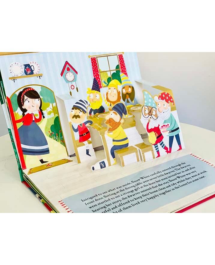 Snow White And the Seven Dwarves: Fairy Tale Pop-Up Book Bring the wonderful story of Snow White and the Seven Dwarves to life with this magical pop-up book. When the evil queen orders Snow White to be killed, she is taken deep into the forest. There, she discovers a lovely little cottage owned by seven dwarves who kindly take her in, but will the queen find out?
